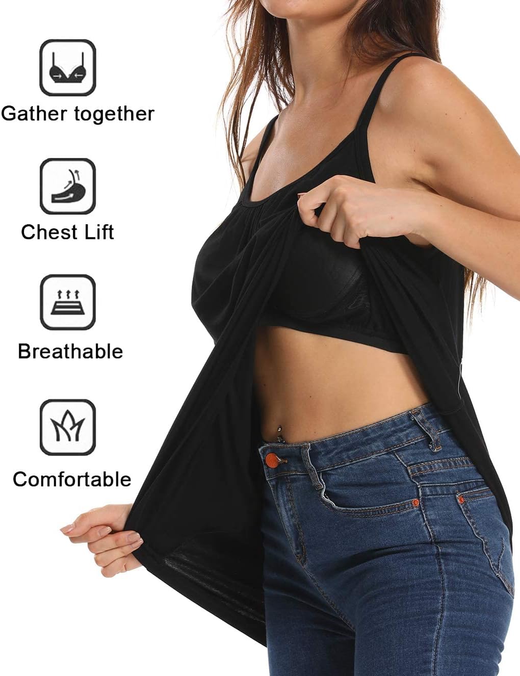 - 💟Praktische Built In Bra Design Einfachen Anwenden💟 top damen mit integrierte BH ist ein wunderbare pflegeleichte Bh Hemden, für alle die nicht jeden Tag BH tragen möchten. Die eingenähten Cups von unterhemden damen sehen natürlich aus und