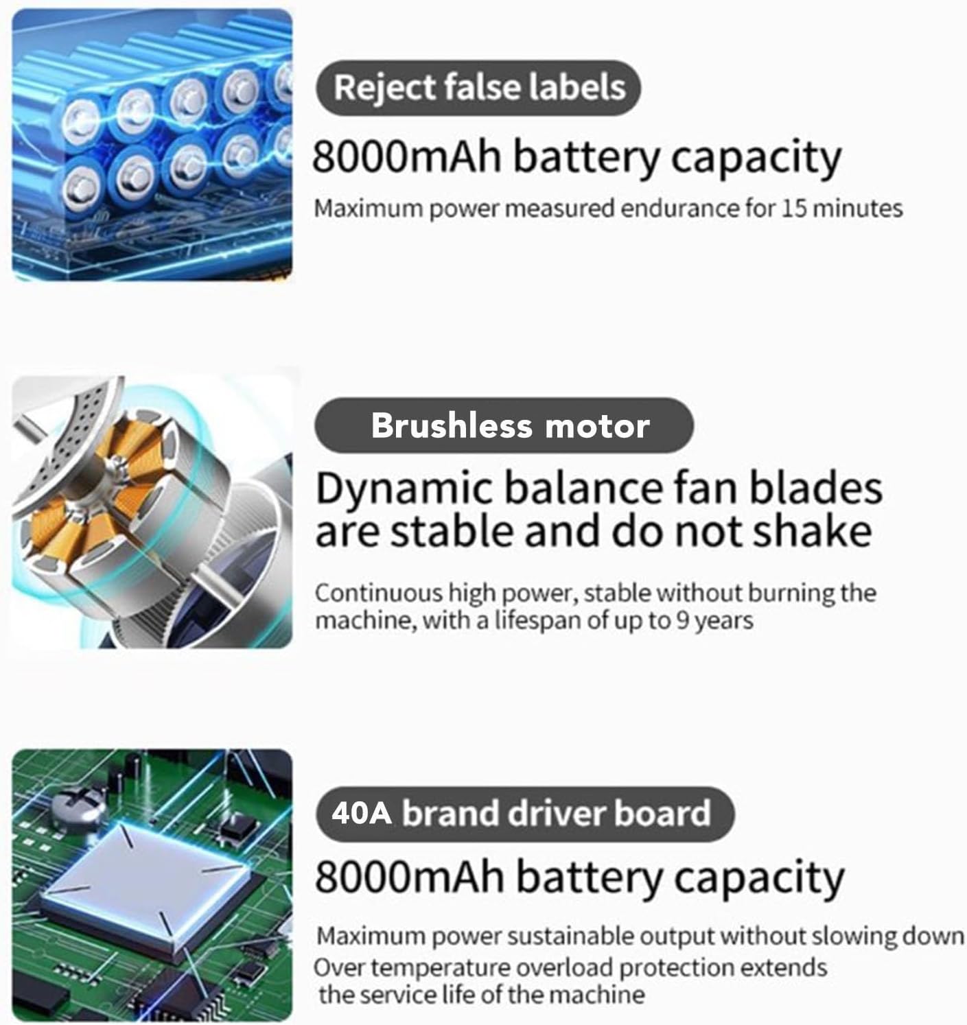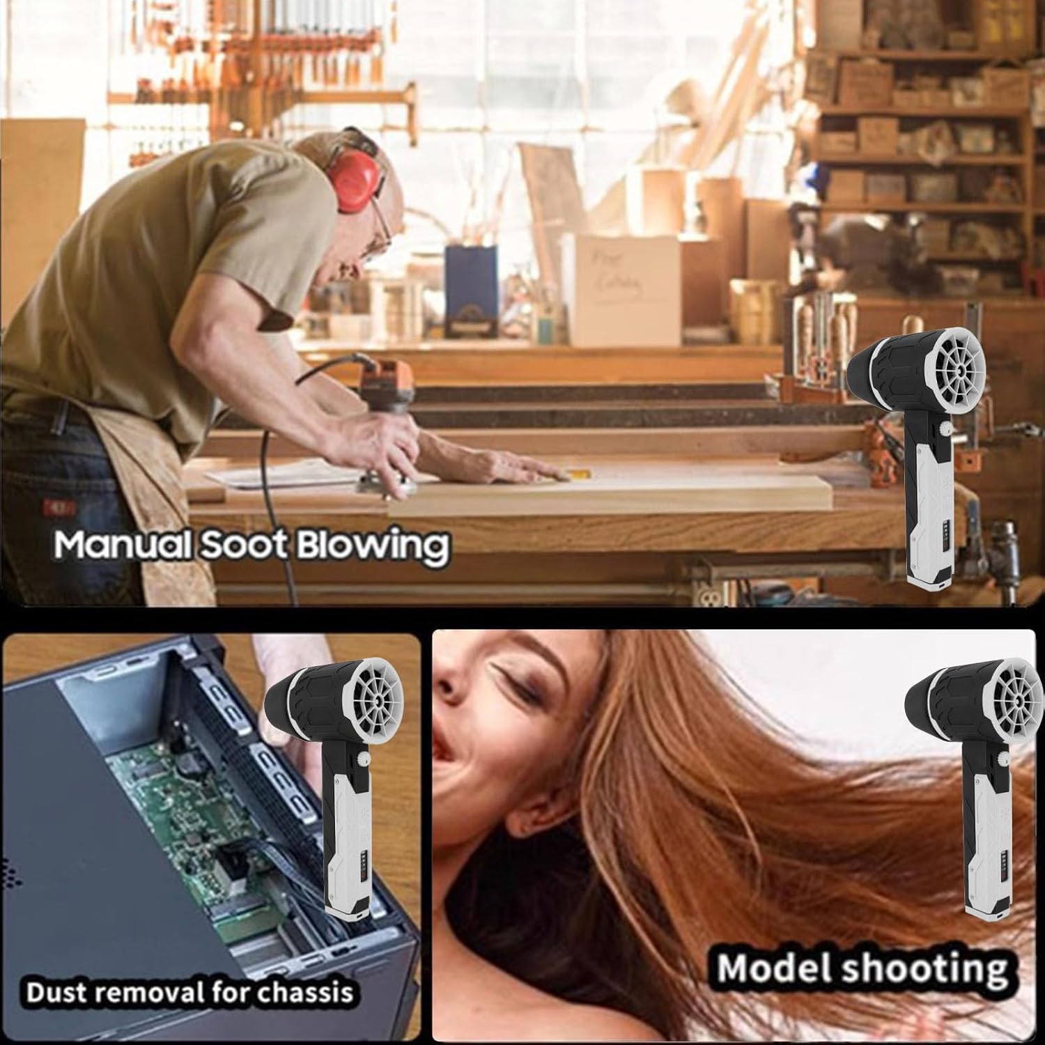 - Gewalttätiger Lüfter: Der Lüfter ist kompakt, leicht und kann mit bis zu 180.000 U/min rotieren. Trocknet Oberflächen schnell und sorgt für beeindruckende Strahlen. Es kann problemlos etwa 1400 g Gegenstände wegblasen, und der Wind ist stark.