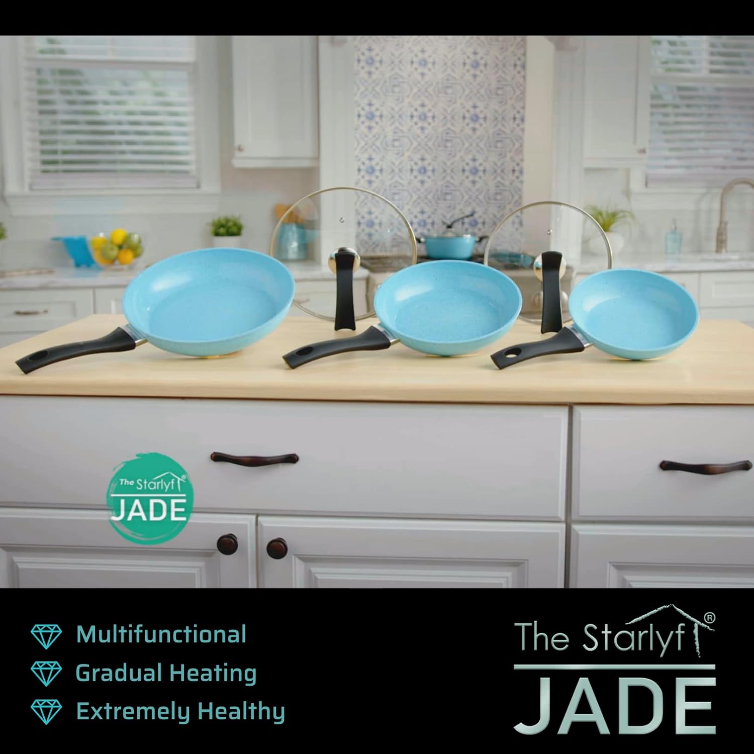 - đă EXTREM GESUNDHEIT ă Die Jade-Pfanne ist ideal fĂŒr eine gesunde und Ă€usserst gesunde KĂŒche. Durch die Verwendung von weniger Fett erhĂ€lt es die NĂ€hrstoffe und verbessert die ErnĂ€hrung.