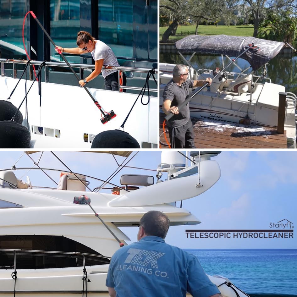 - KEINE TREPPEN MEHR Dank des Teleskop-Hydroreinigers und seiner 4,6 Meter Reichweite können Sie alle schwierigen Stellen reinigen, Fenstergläser, Solarzellen, Glasvorhangwände, Hausdächer, Autos, LKWs, Motorräder, Fassaden, Wohnwagen usw. reinigen.