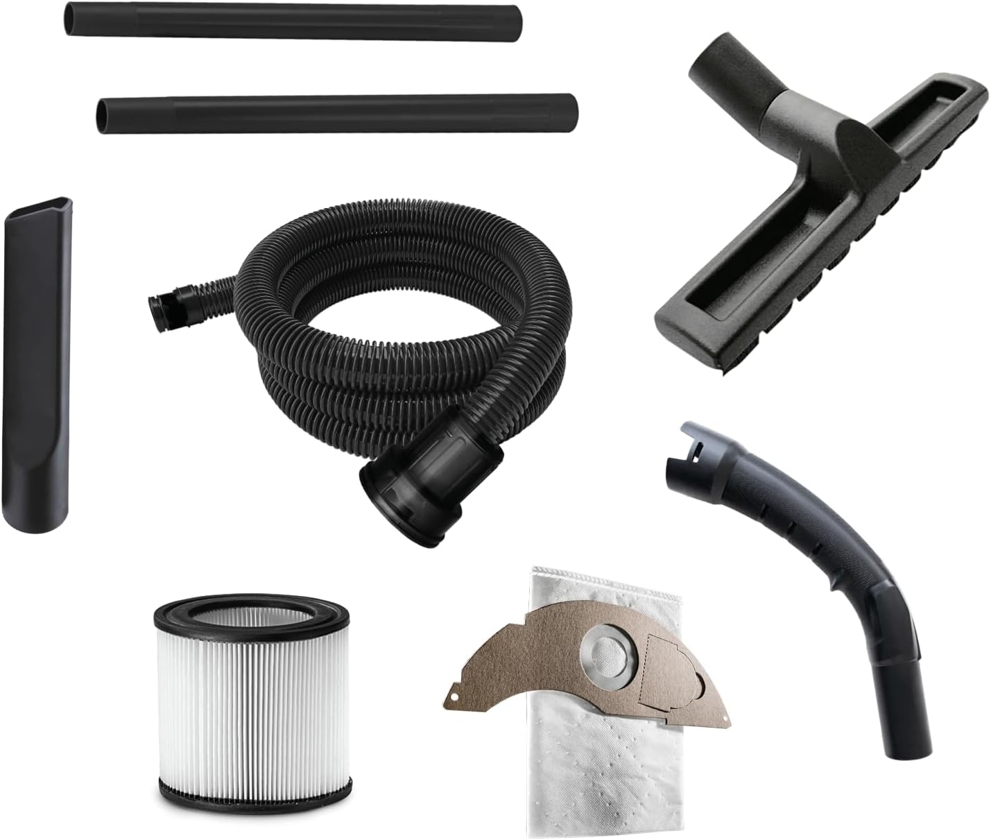 • Im Lieferumfang enthalten: 1x Saugschlauch 1,9 m, 1x ergonomisches Griffrohr, 2x Saugrohr je 50 cm, 1x Bodendüse mit Borsten- und Gummileisten, 1x Fugendüse 22,5 cm lang, 1 Stk. Filterbeutel FBV 22, 1x Hauptfilter FPP 3400, 1x starmix eCraft L-1422 HKR