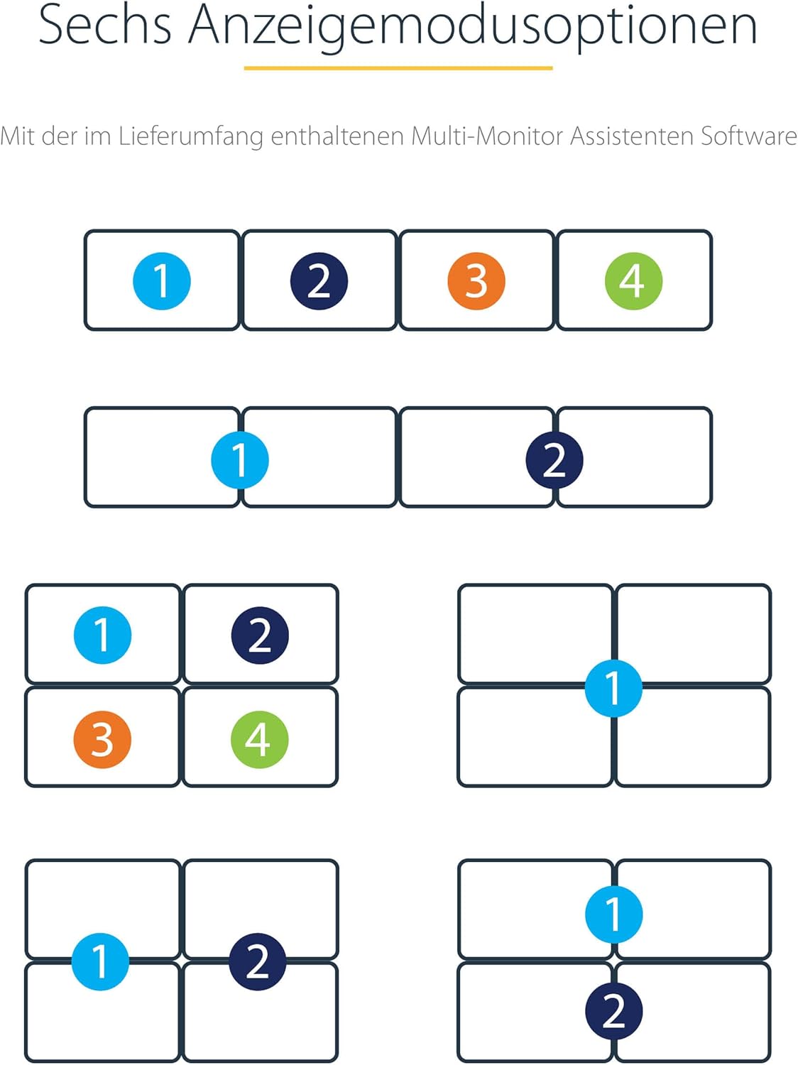 - VIERFACH-MONITOR DISPLAY ADAPTER: Mit dem USB-C auf 4x HDMI Videoadapter können Sie Ihren Desktop erweitern, indem Sie Ihrem Laptop oder Desktop-Computer mit bis zu vier HDMI-Monitore hinzufügen - 4x 1080 p 60 Hz Displays - 2-Kanal Audio (eine