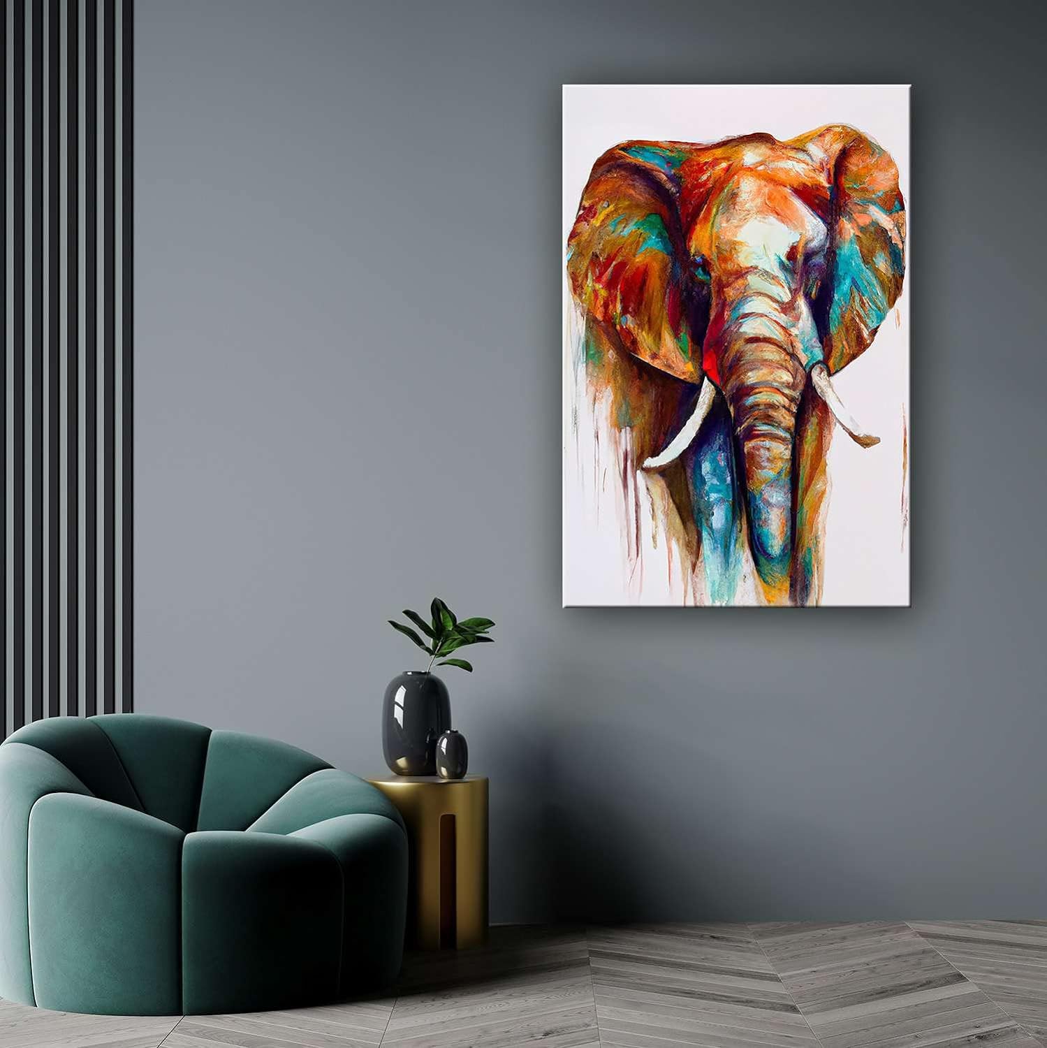 - Kunstwerke mit Tiermotiven zeichnen eine kreative Persönlichkeit; Insbesondere diese Wandkunst-Leinwand Farben eines Elefanten ist ein Trendsetter in seiner Kategorie mit einer starken Botschaft; Entdecken Sie die doppelte Überraschung Funktion dieses