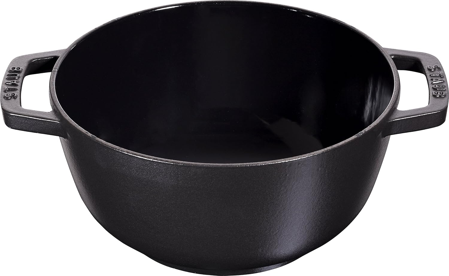 • Lieferumfang: 1x STAUB Fondueset inkl. 1x Fondue Topf, 1x Rechaud, 1x Brenner, 6x Fonduegabeln, 1x Brennpaste, Fassungsvermögen: 2,3 L, Masse (LxBxH): 26,5 x 20,7 x 11,6 cm, Durchmesser (ohne Griffe): 20 cm, Gewicht: 5 kg, Material: Gusseisen, Farbe: Schwarz, 1005032
