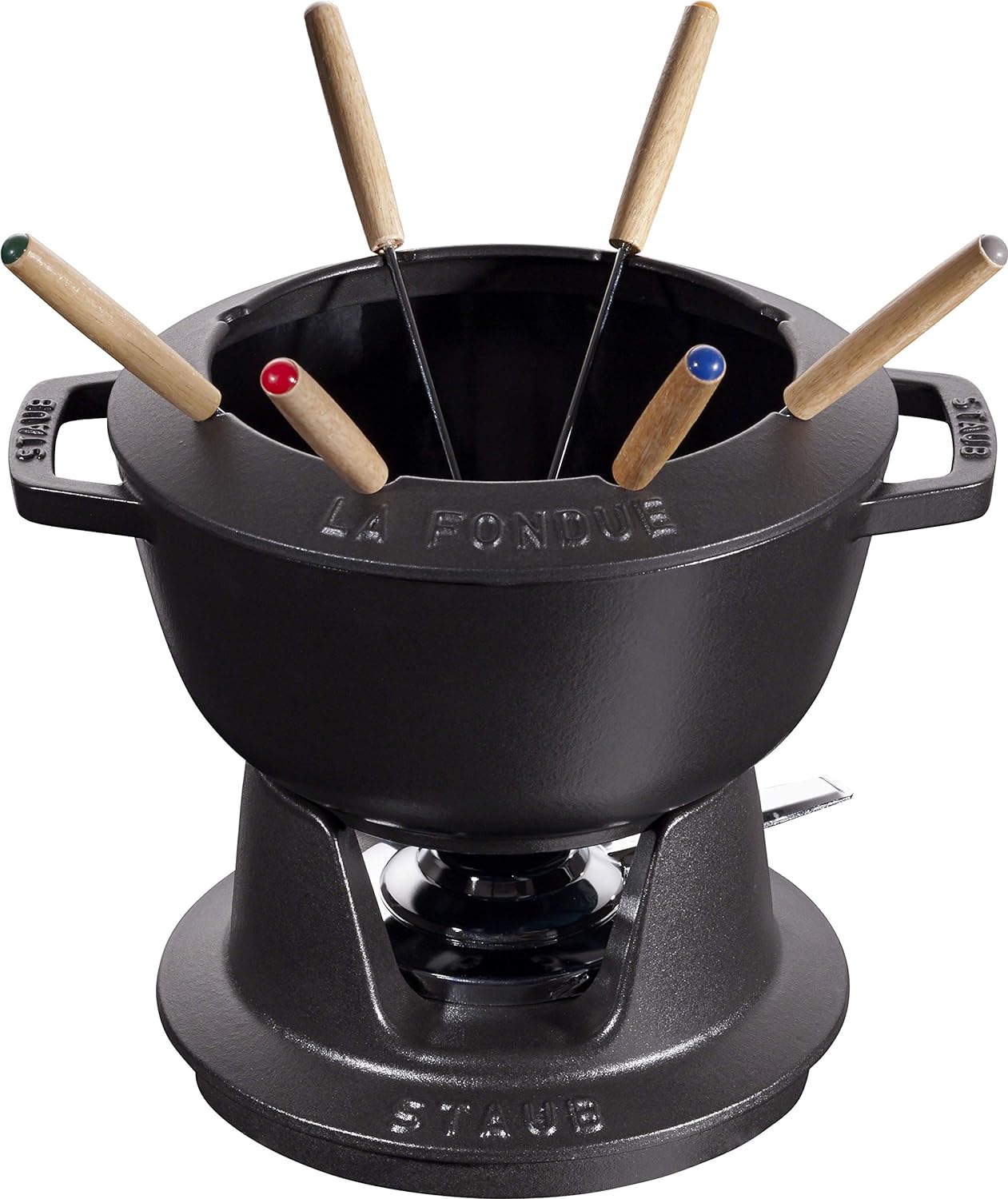STAUB Fondue Set mit 6 Gabeln, Geeignet für Käse- Schoko- und Fleisch-Fondue, Gusseisen, 20 cm, Schw