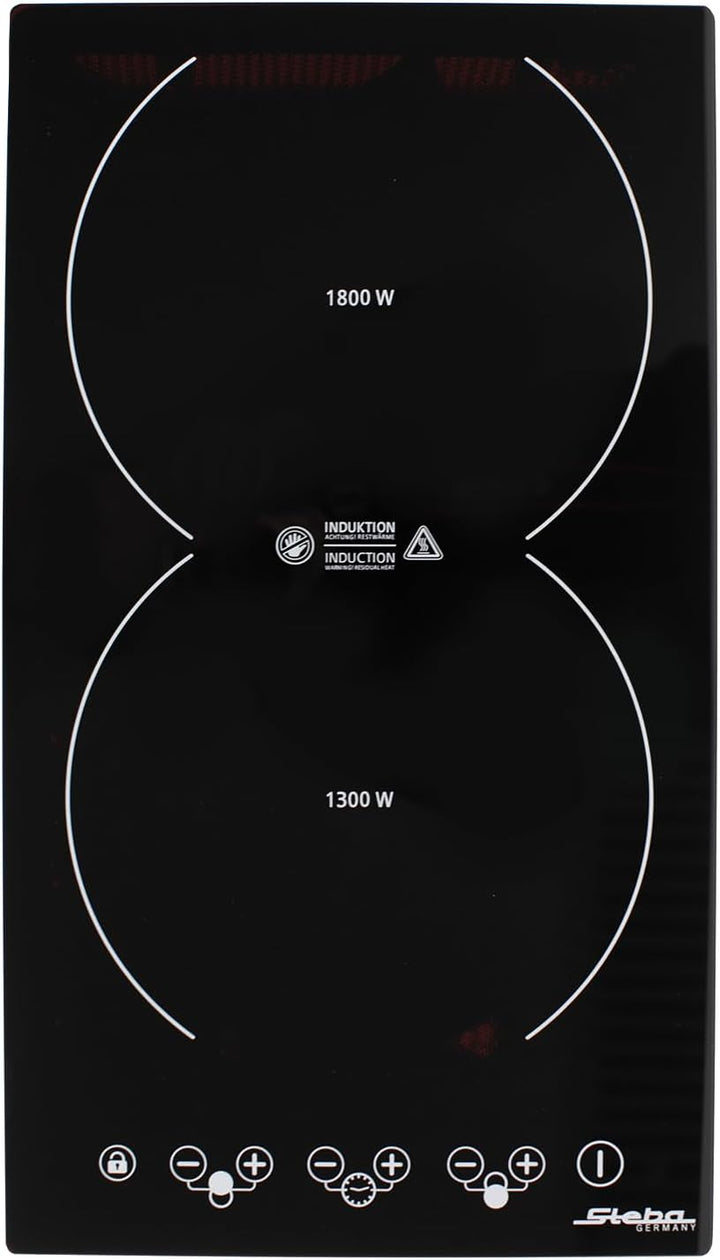 - Touch Control, 8 Leistungsstufen, Feld L 1800W/ Feld R 1300W, Timerfunktion (5-99 min.)