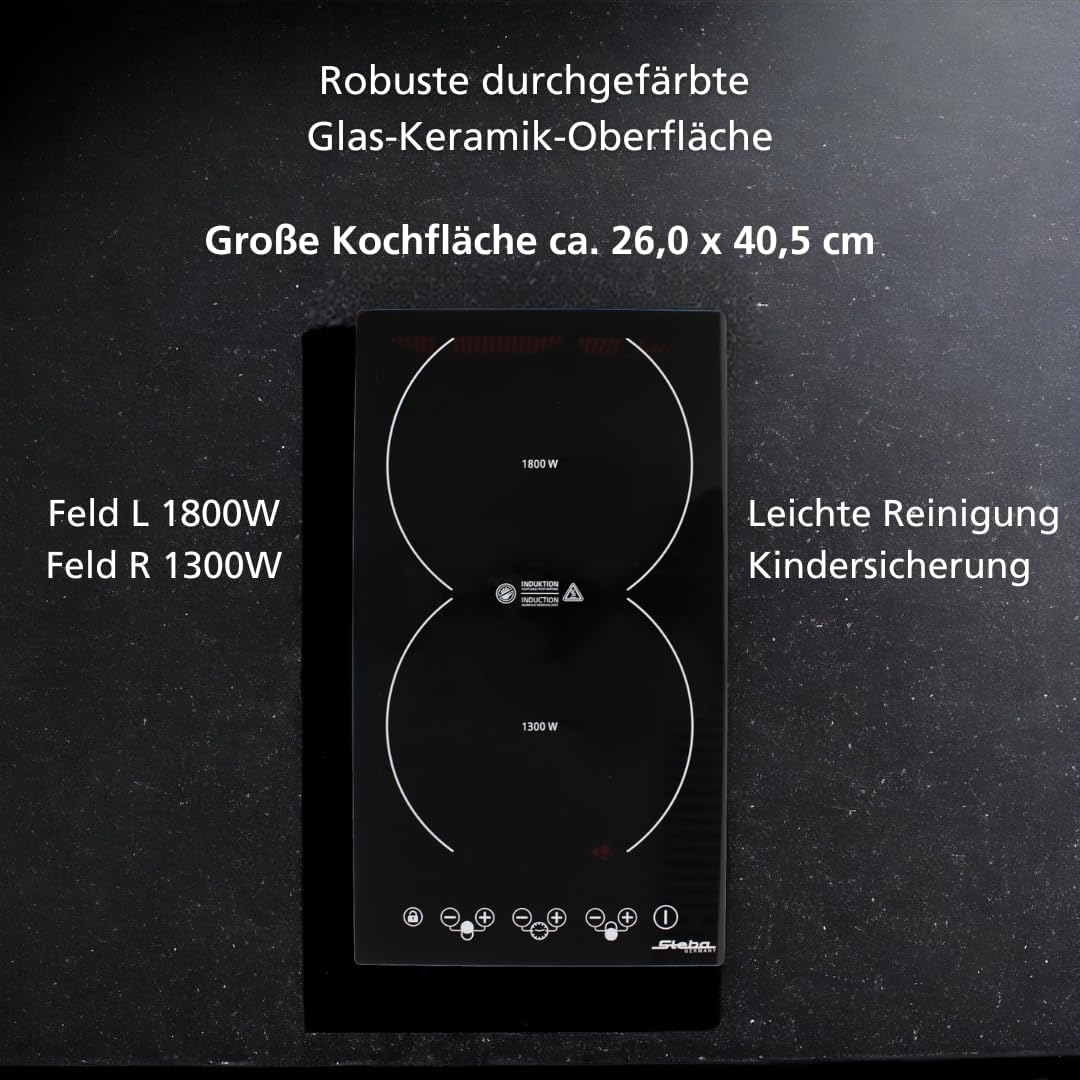 - Durchgefärbte Glas-Keramik-Oberfläche, Kochfläche ca. 24 x 40,5 cm, Einbaufähig, Auch mobil einsetzbar