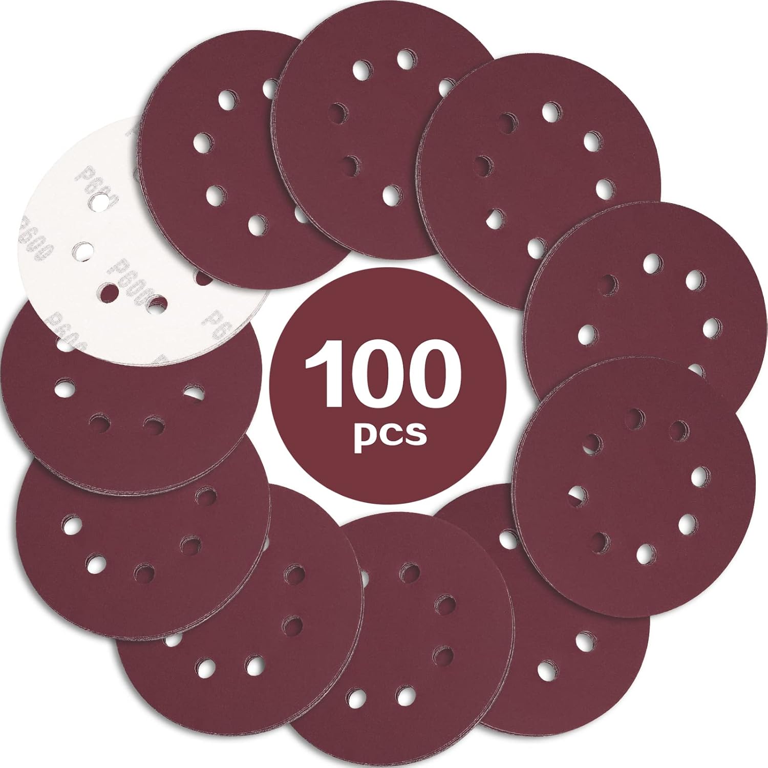 - ✅【SIND ALLE GÄNGIGEN SCHLEIFKÖRNUNGEN DABEI P600】Masse: Ø 125mm, Material Normalkorund, Körnung P600 8 Löcher Schleifpapier 125mm Klett, Schleifscheiben für Exzenterschleifer Schleifteller in rot, 100 Stück Schleifpapier für Schleifen Holz,