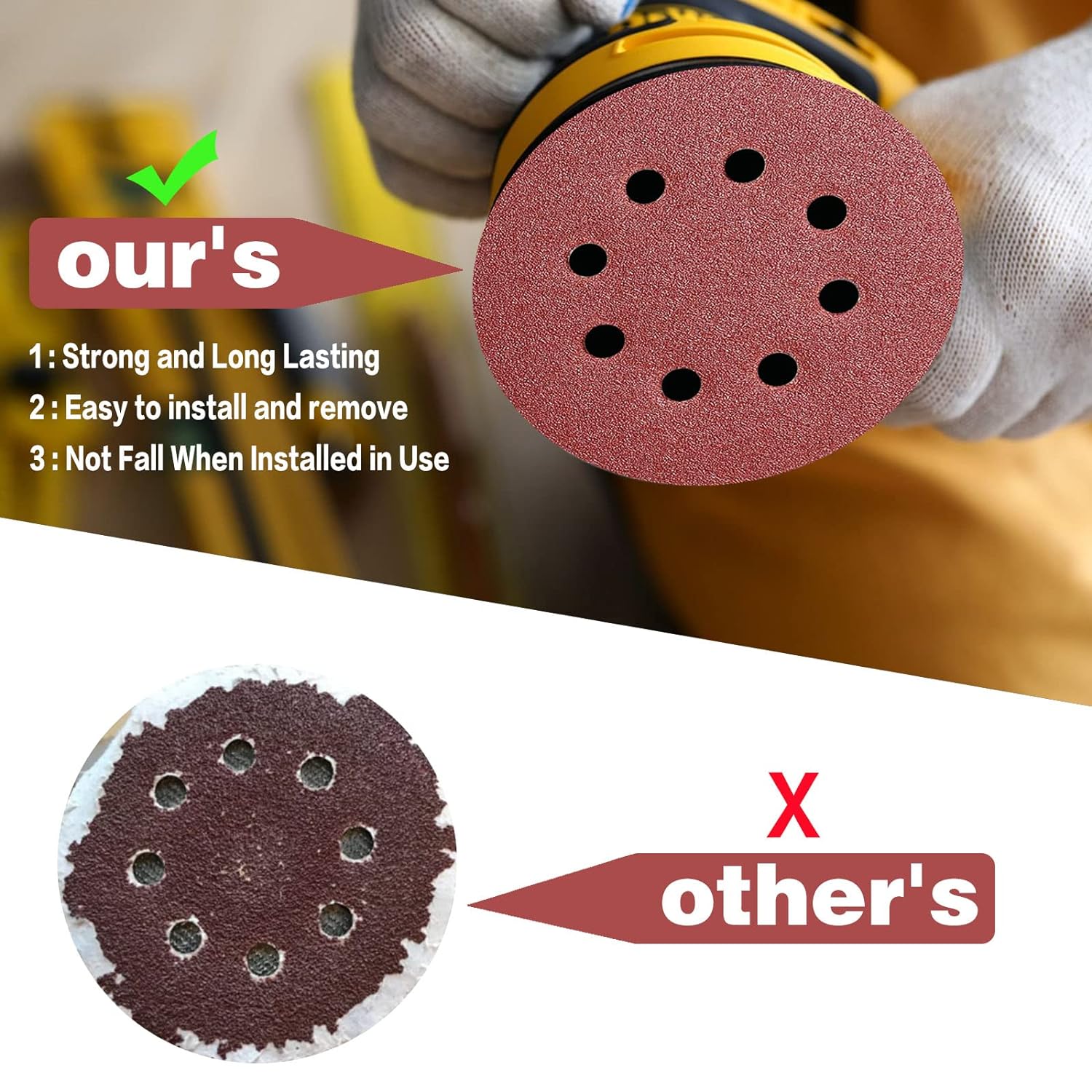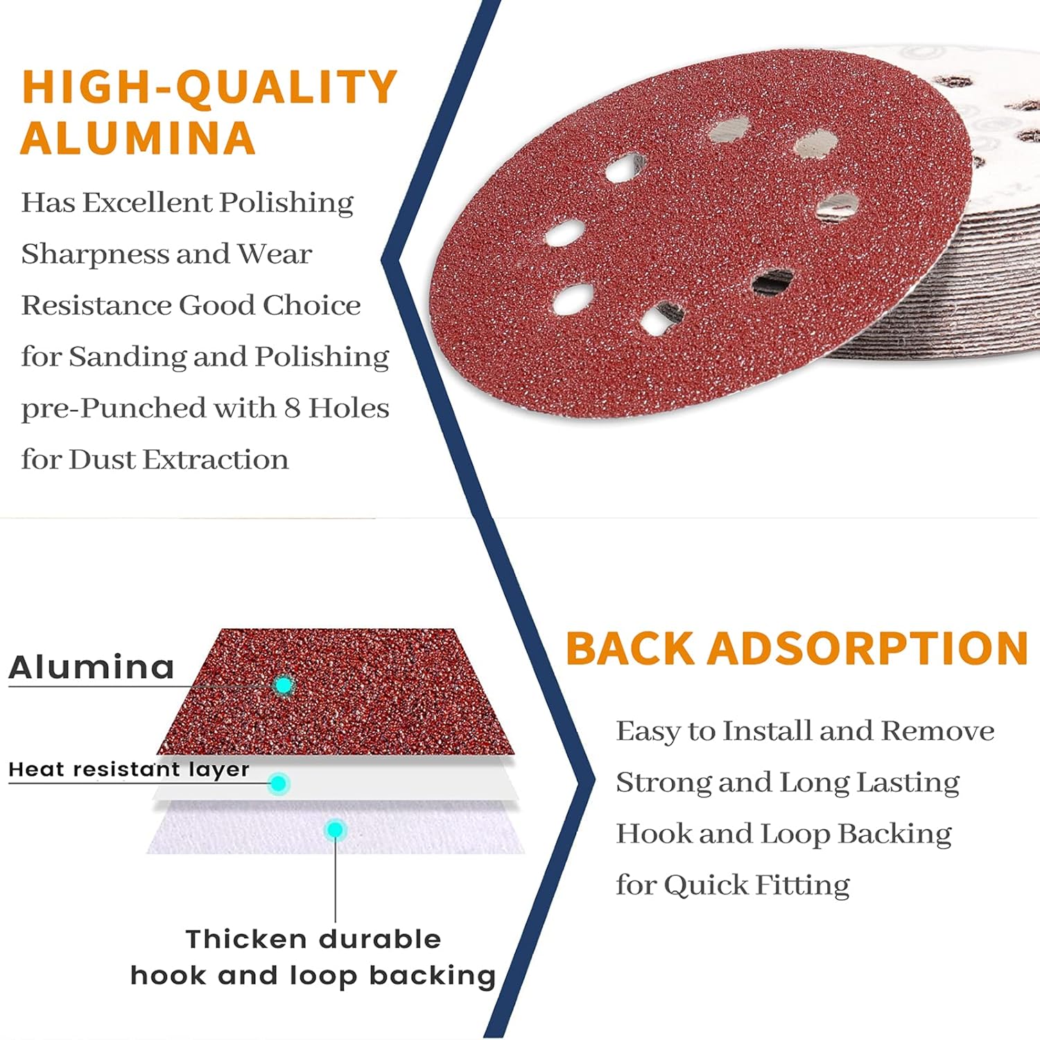 - ✅【Einfach zu bedienen】 Schleifscheiben Die Pads haben einen haltbaren Klettverschluss, einen Klettverschluss für eine schnelle Montage, 8 Löcher zur Staubabsaugung, Verstopfungsschutz, sind stark und langlebig, einfach zu installieren und zu