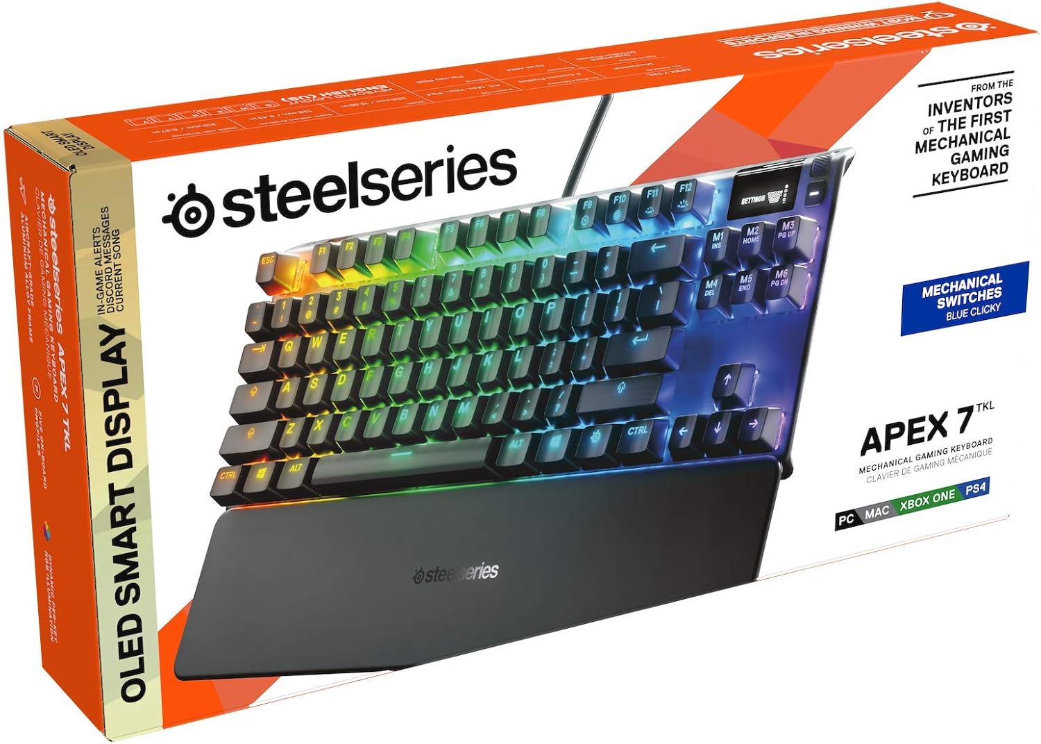 SteelSeries Apex 7 TKL - Mechanische Gaming-Tastatur - Kompakt (TKL) - OLED Smart Display - Blau Sch