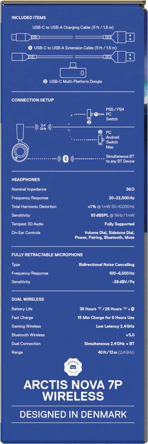 • Multi-Plattform-Support – Verbinde das Arctis Nova 7 via USB-C-Dongle im Taschenformat für verzögerungsfreies Quantum 2.0 Wireless (2,4 GHz) mit deiner bevorzugten Plattform, darunter PlayStation, PC, Mac oder Switch. USB-A-Adapter im Lieferumfang enthalten.