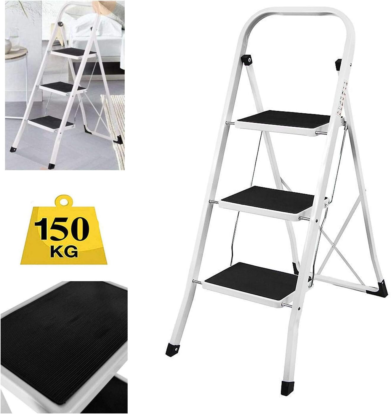 - Die Trittleiter ist extrem robust und langlebig. Sie ist langlebig und lässt sich zur einfachen Aufbewahrung zusammenklappen.
