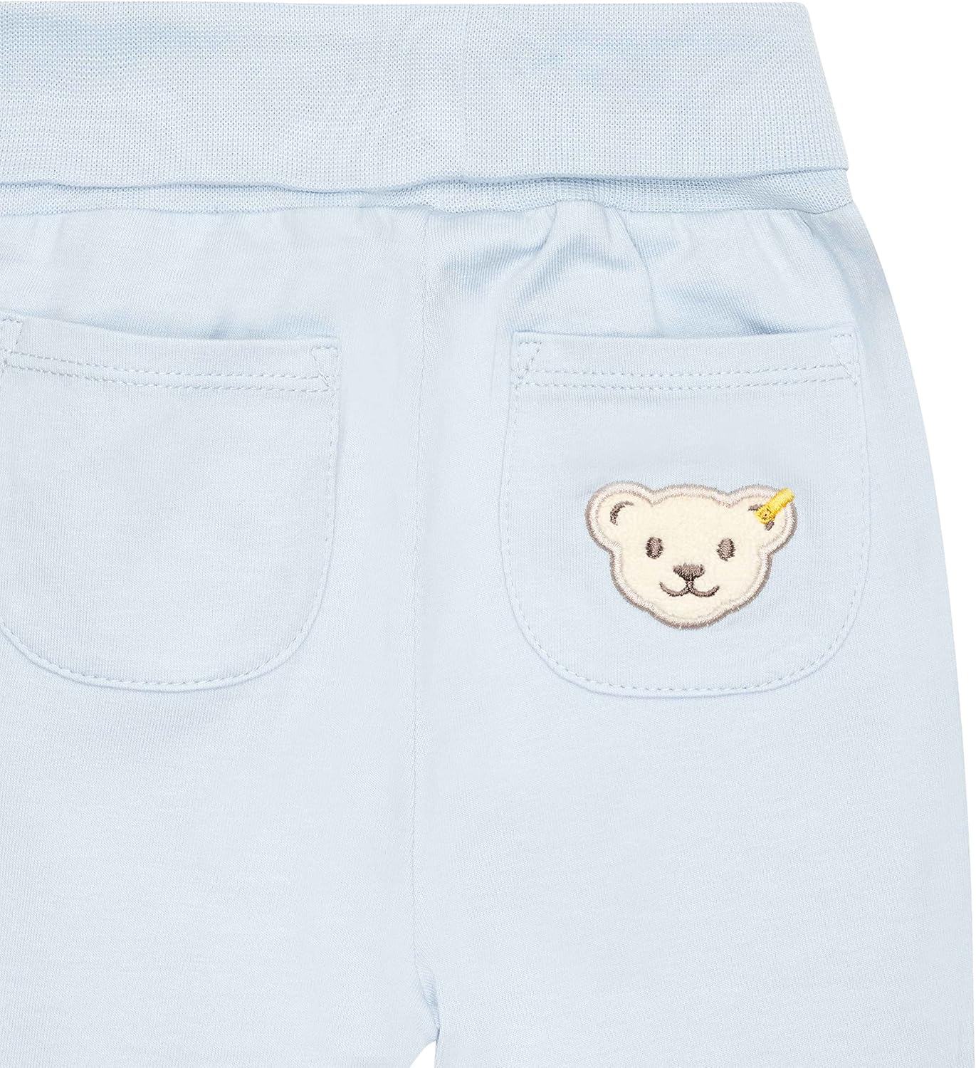 PRODUKTBESCHREIBUNGEN Anschmiegsam und in einer bequemen Passform gearbeitet, gehört die Jogginghose aus weichem Jersey zur Grundausstattung der kleinsten Weltentdecker. Das flexible Material und ein sanfter Schlupfbund begleiten munteres Spielen wie auch ausgiebiges entspannen mit viel Bewegungsfreiheit. In dem gemütlichen Allrounder lässt sich wunderbar einschlafen. Navyblau ist auch festlich kombinierbar. Für alle Fälle ist ein flauschiges Steiff Teddybärmotiv auf der hinteren Tasche überall mit dabei. So niedlich!