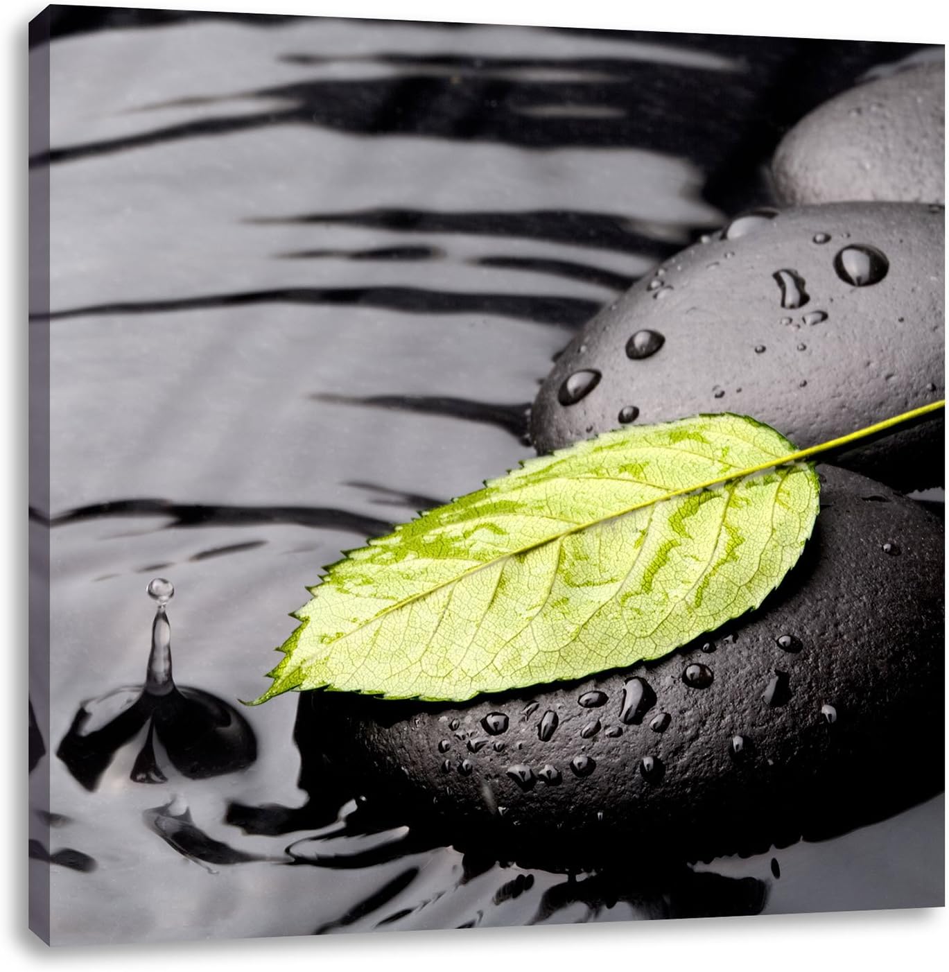 Pixxprint Stein mit Blatt, Format: 70x70 auf Leinwand, XXL riesige Bilder fertig gerahmt mit Keilrah