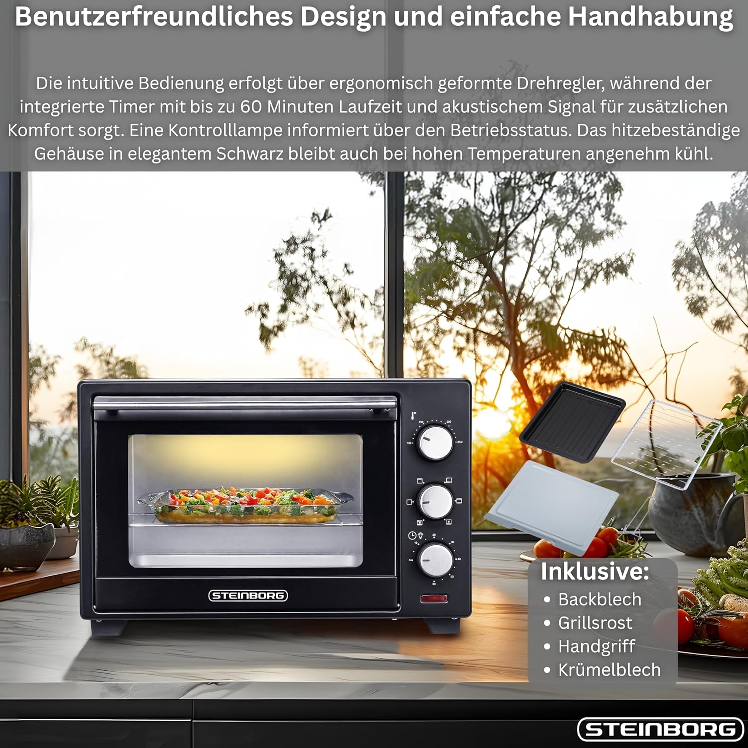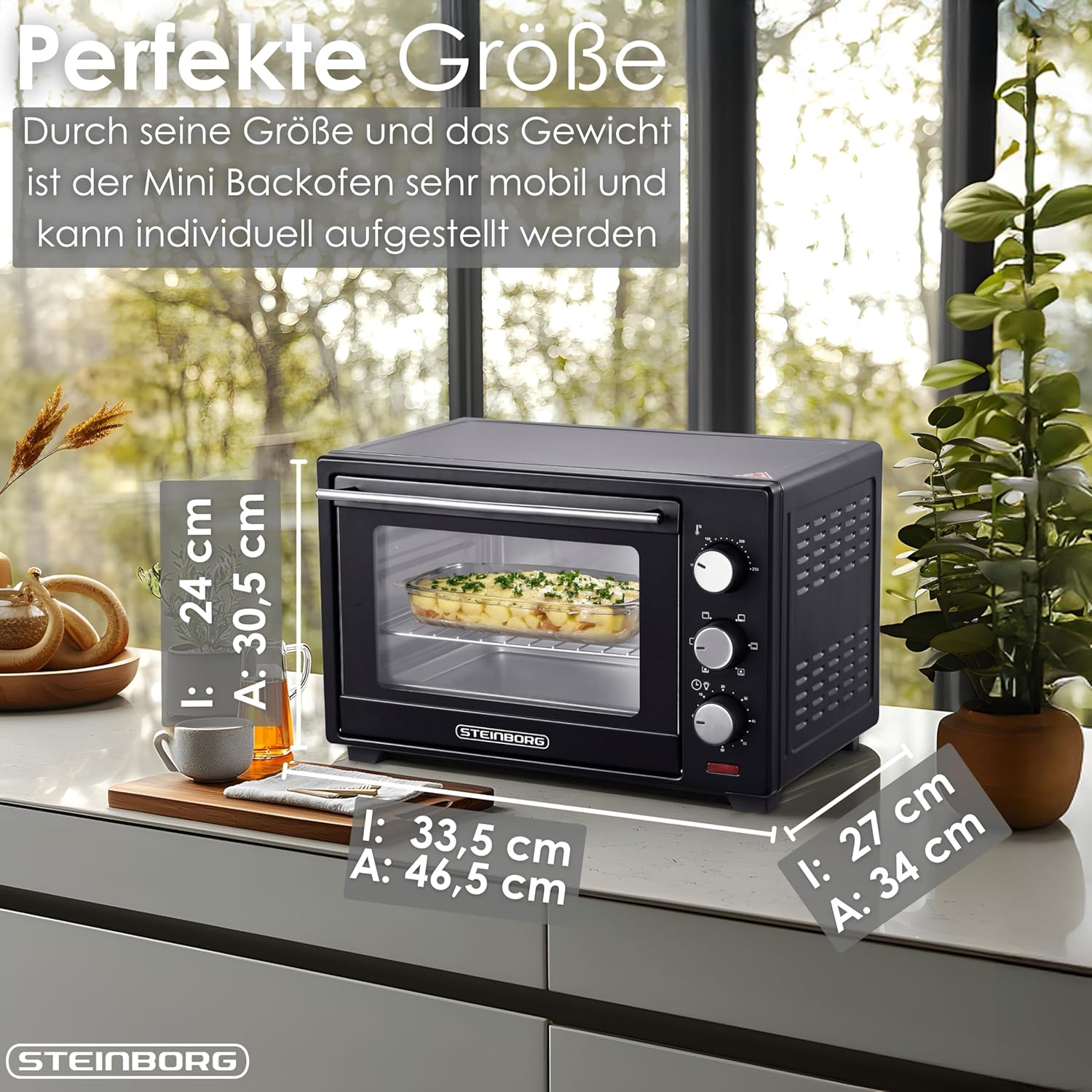 - ◾Mini-Backofen 25 Liter – Vielseitig, kompakt und leistungsstark◾ Entdecken Sie den perfekten Küchenhelfer für jeden Haushalt: Unser Mini-Backofen mit 25 Liter Fassungsvermögen vereint modernes Design, hohe Leistung und vielseitige Funktionen in