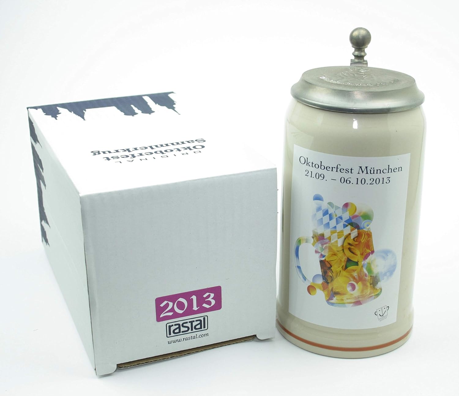- Sie erhalten einen echten und original verpackten offiziellen Oktoberfestkrug aus dem Jahr 2013 mit Zinndeckel von Steinfixx
