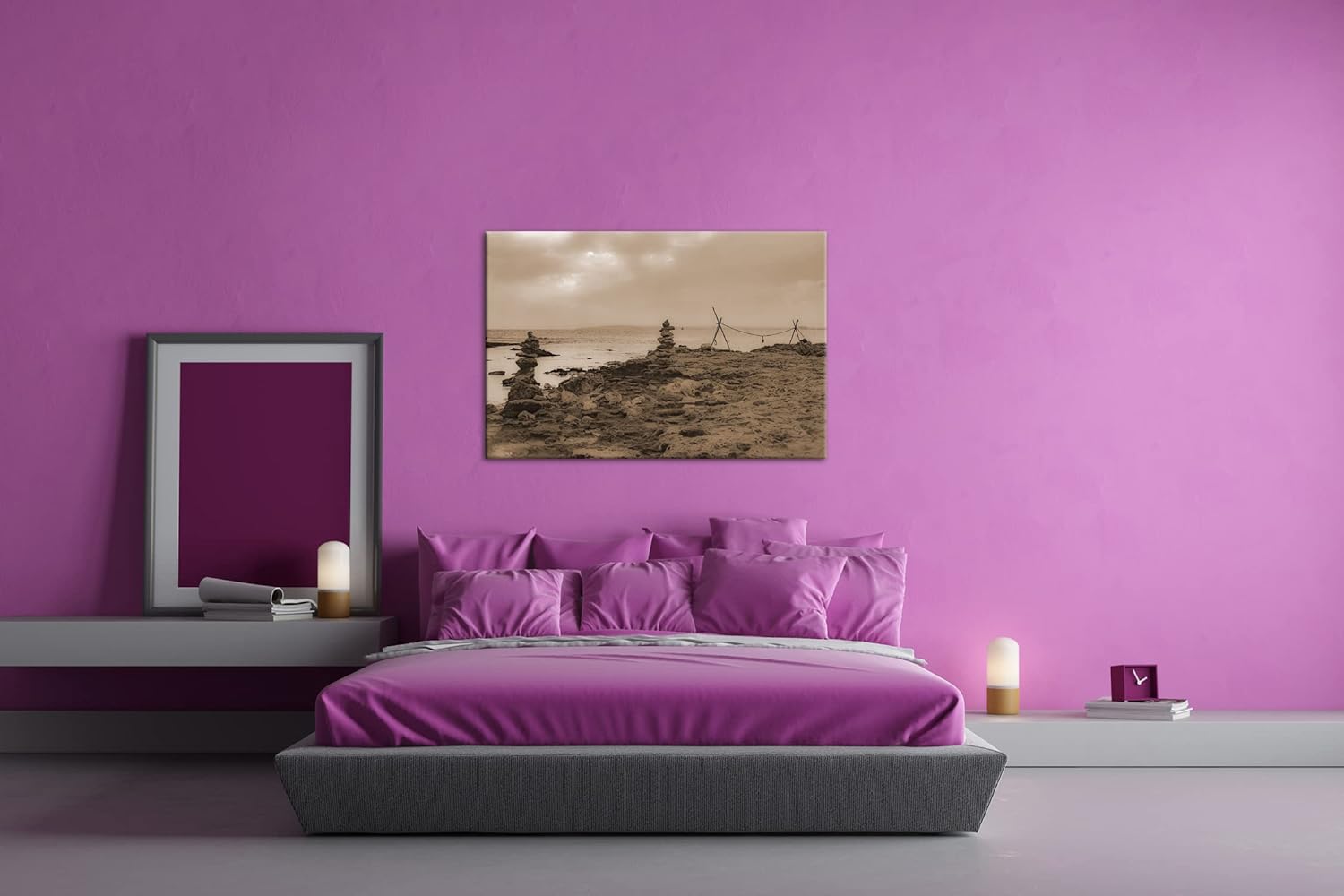 deyoli steiniger Strand in Zypern Effekt: Sepia, Format: 80x60 als Leinwandbild, Motiv fertig gerahm