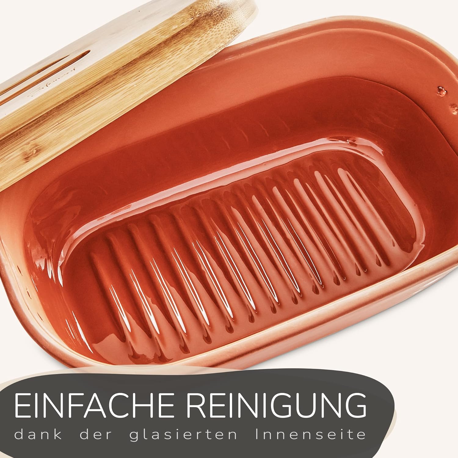 - 🥖 OPTIMALE BROTLAGERUNG - Perfekte Luftzufuhr für dein Brot, dank Rillen am Boden der Brotbox und 6 integrierter Luftlöcher. Der atmungsaktive Ton nimmt zusätzlich überschüssige Feuchtigkeit auf.