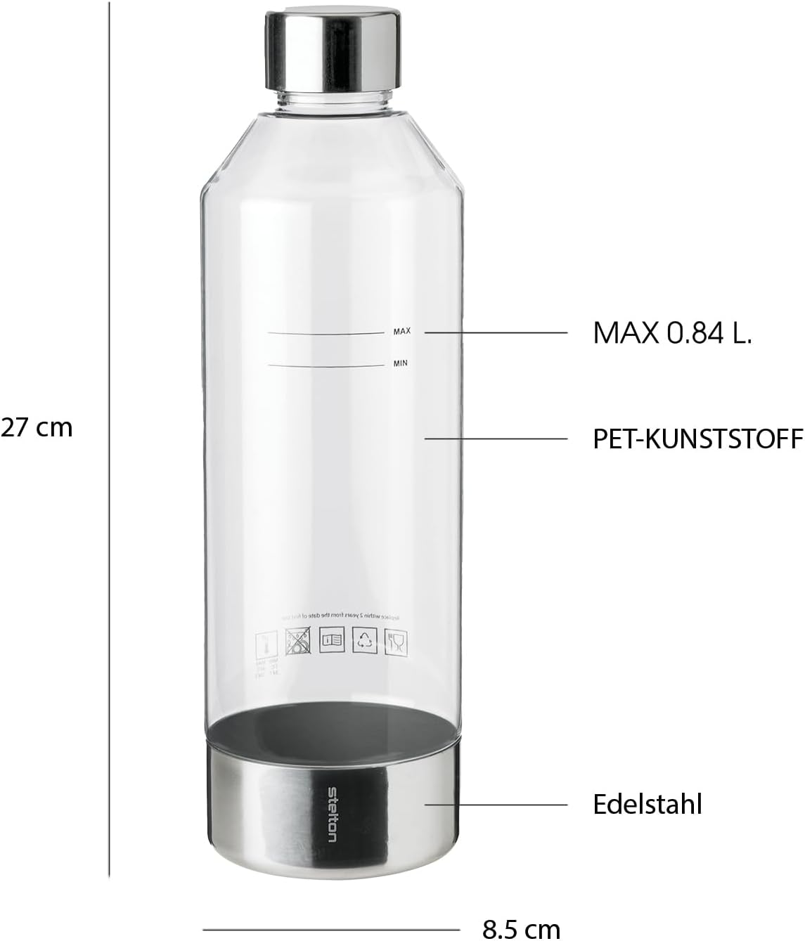 - Eine schlichte Flasche, die speziell auf das Design und die Funktion des Brus Wassersprudlers abgestimmt ist.