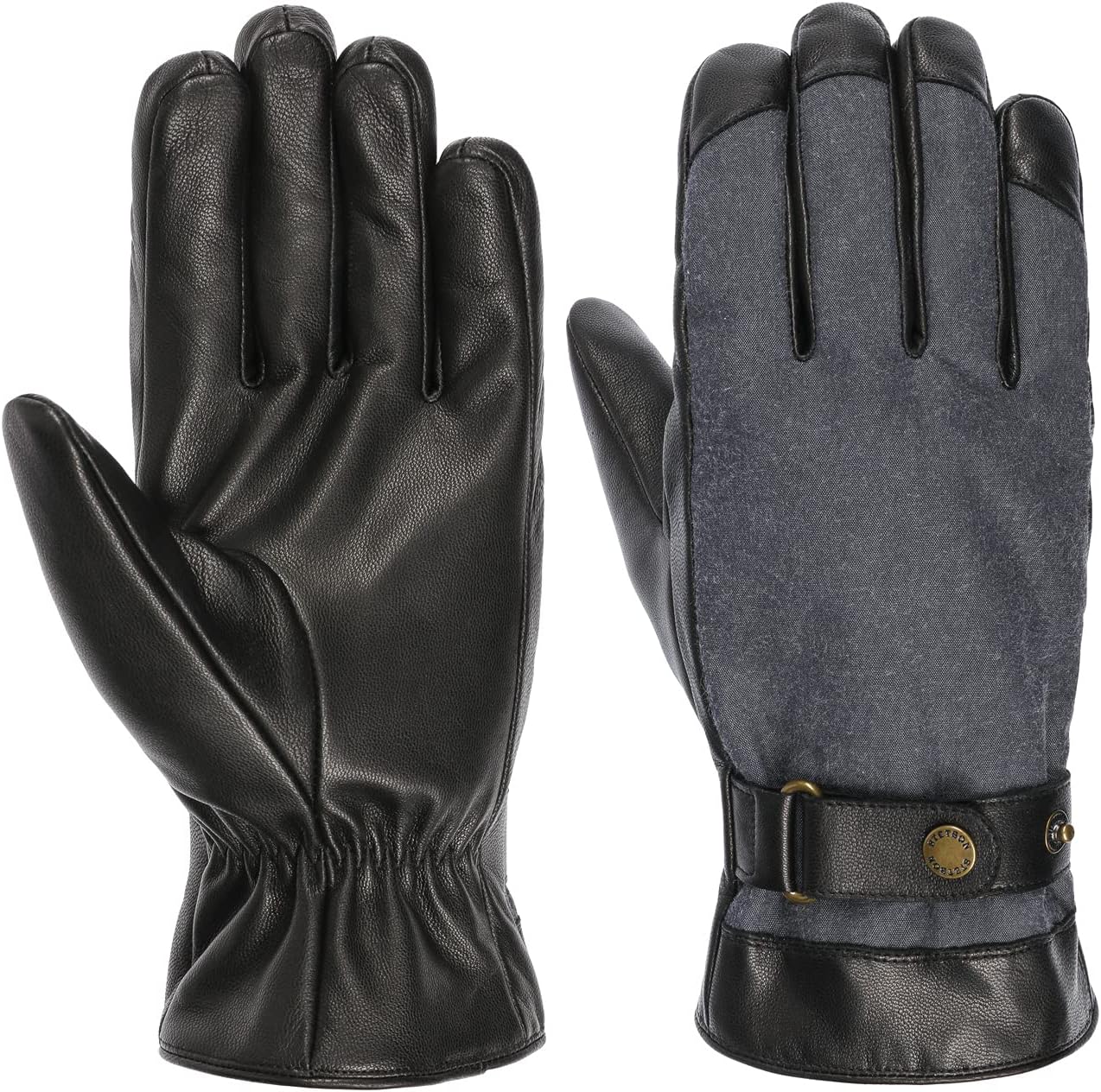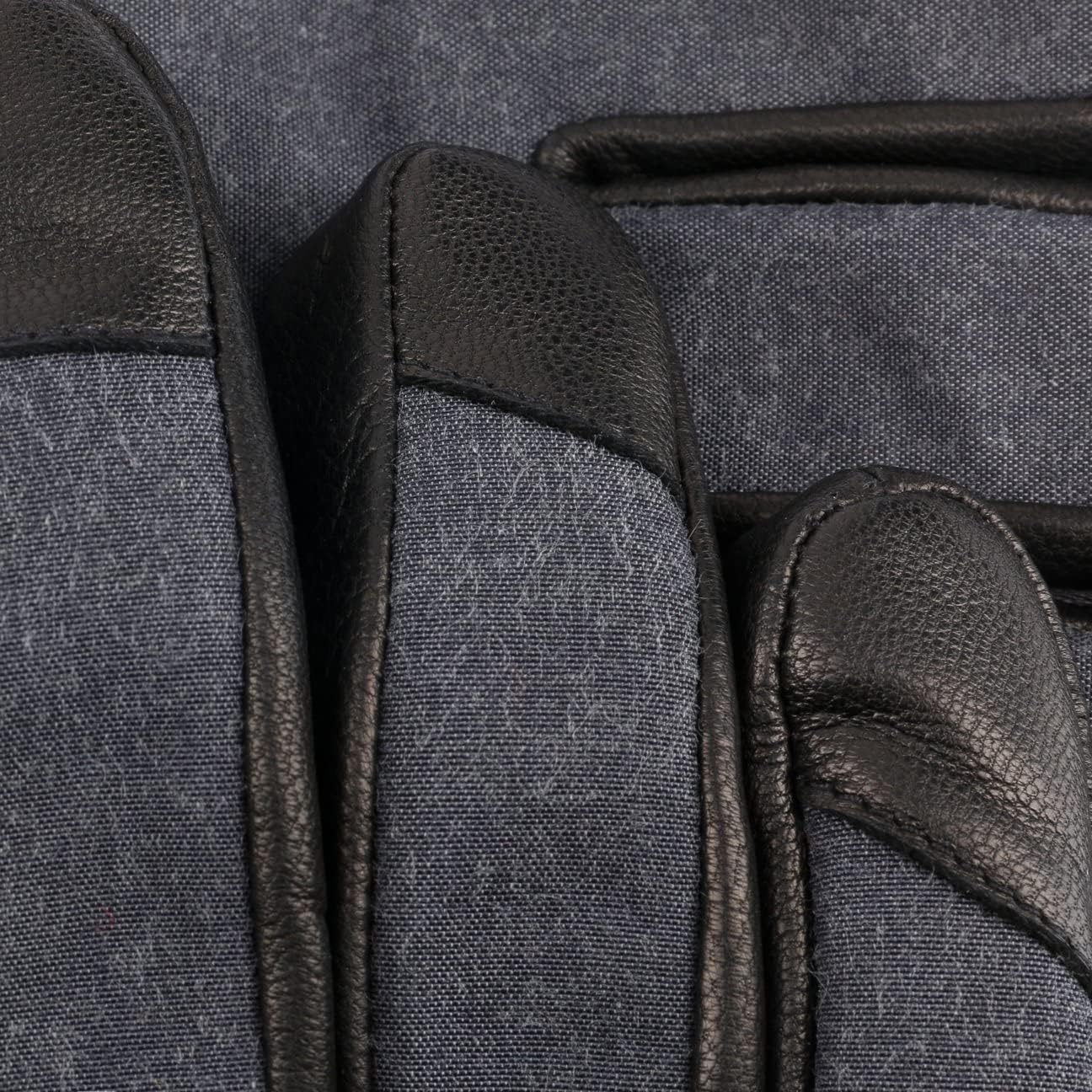 PRODUKTBESCHREIBUNGEN Die Handschuhe aus dem Hause Stetson bieten zwei Seiten derselben hochwertigen Medaille: Während die Innenflächen aus erstklassigem Ziegenleder bestehen, spielt aussen gewachste Baumwolle die Hauptrolle. Sie weiss am besten mit Wind und Wetter umzugehen. Das robust anmutende Design perfektionieren zahlreiche Accessoires wie die gerafften Bündchen und die Schnalle aus Leder, die auch aus praktischen Gründen sinnvoll sind.