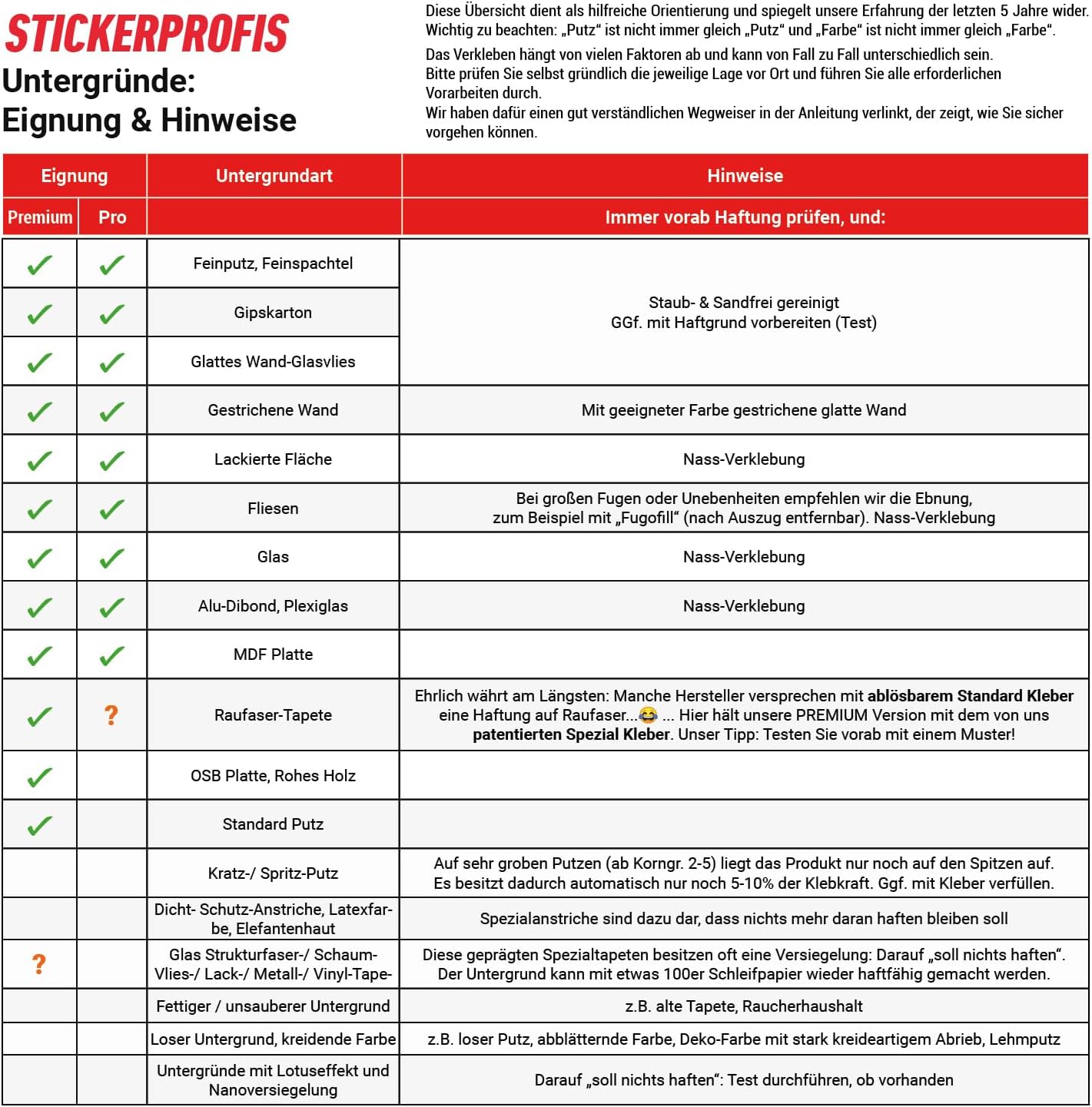 - NUR BEI STICKERPROFIS: 1.8mm dickes und biegsteifes Verbundmaterial. Es überdeckt Raufaser, Fugen, …