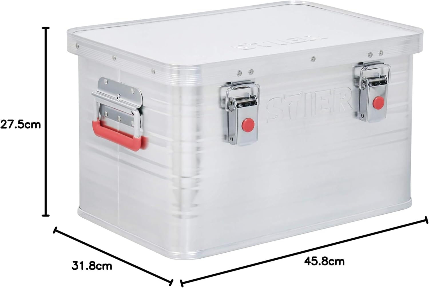 - SICHERER EINSATZ: Stabile Hebelspannverschlüsse für wirksames Haften des Deckels; Begrenzungen im Deckelrahmen für einfaches Stapeln mehrere STIER Aluboxern; Seitlich angebrachte Hebelgriffe für bequemen Transport