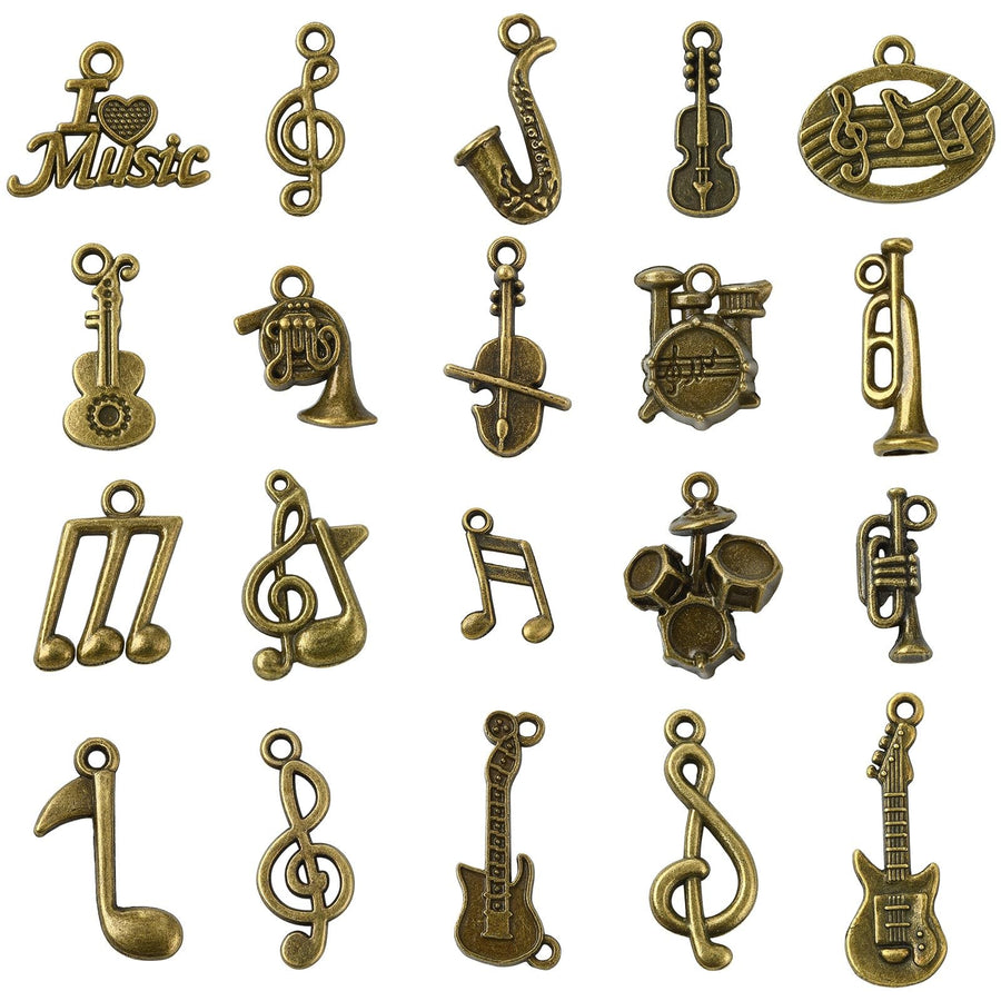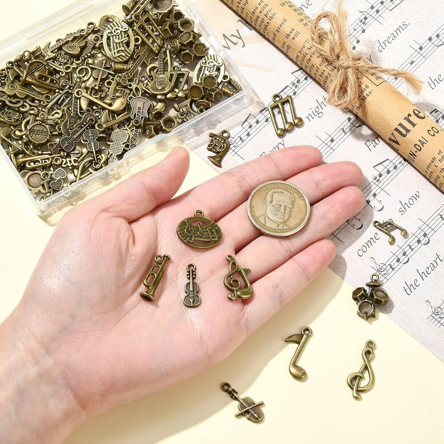 - Elegantes Design mit Musikmotiv: Diese antiken Bronze-Anhänger verfügen über ein charmantes Design von Musikinstrumenten und Noten, perfekt für Musikliebhaber und Schmuckhersteller. Seine detaillierte Vintage-Ästhetik macht ihn zu einer