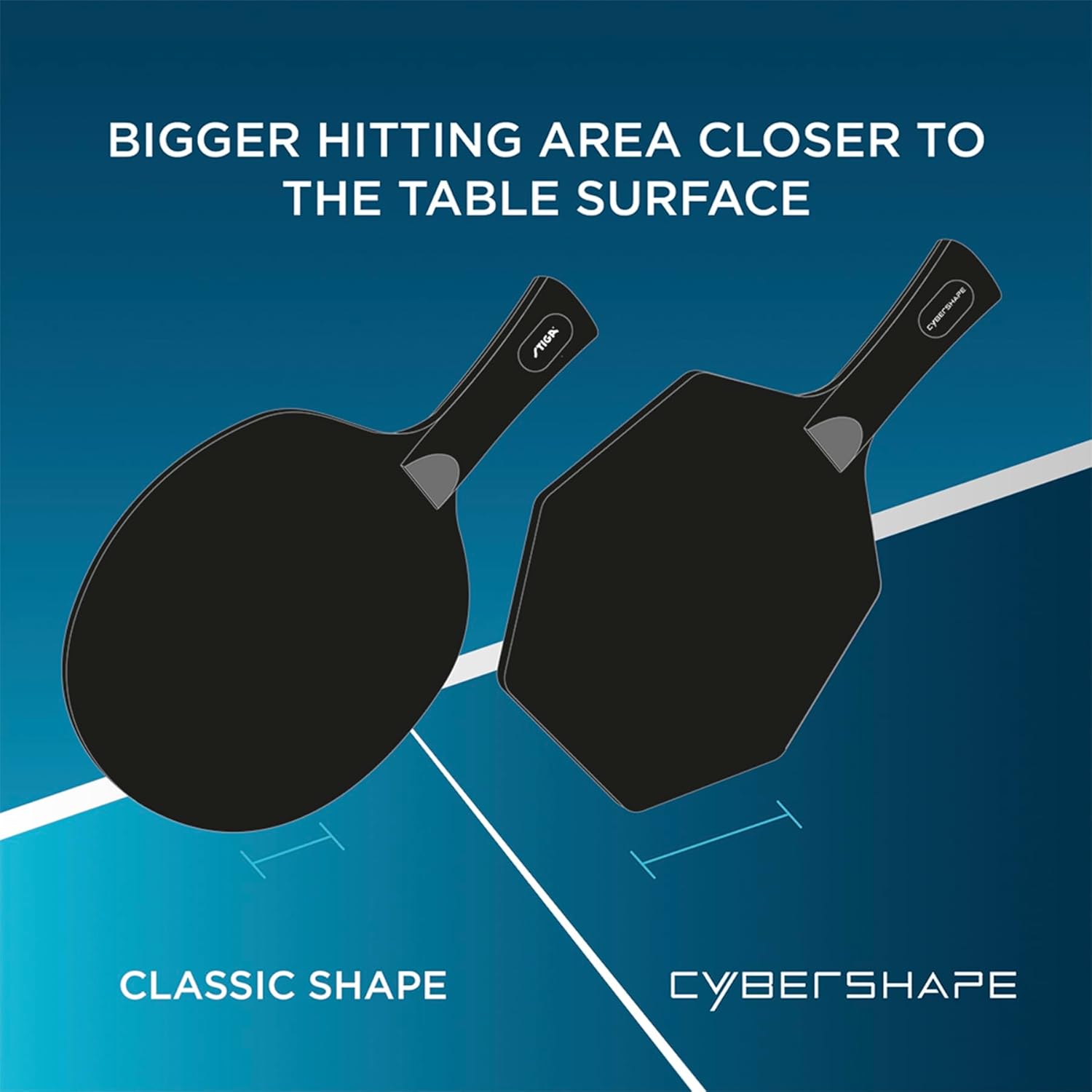 - Cybershape Wood ist für alle Arten von Wettkampfspielen zugelassen. Studien haben gezeigt, dass die optimale Schlagfläche auf der oberen Hälfte des Blattes ist, deshalb hat der Cybershape eine optimierte Schlagfläche und wir haben wir den Sweetspot