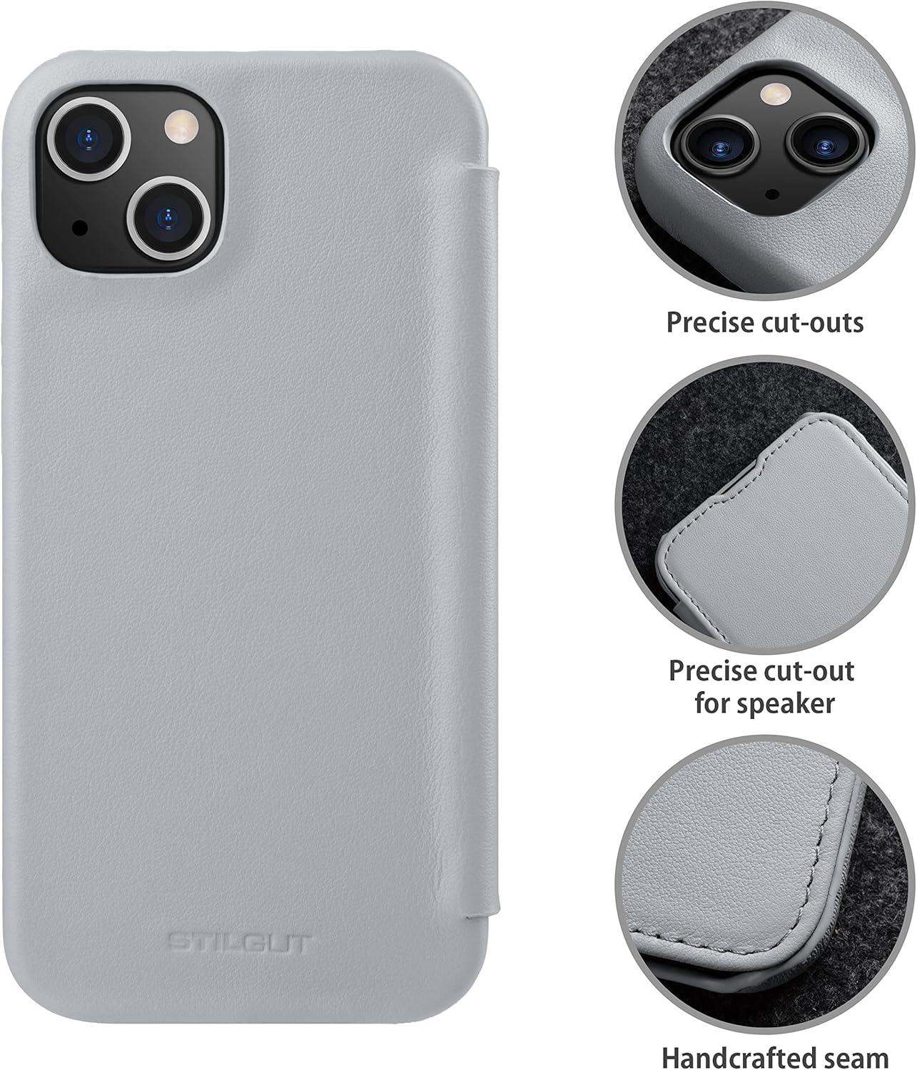 - ✅ OPTIMALER SCHUTZ: Robuste iPhone 13 mini Lederhülle ohne Magnet mit stossfester, lederbezogener Kunststoffschale und weicher Mikrofaser auf der Innenseite für optimalen Schutz vor Beschädigungen