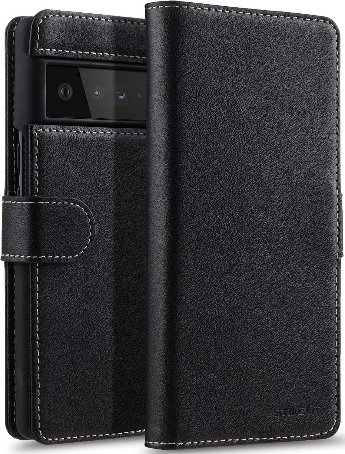 STILGUT Talis kompatibel mit Google Pixel 6 Pro Hülle mit Kartenfach aus Leder, Flip Cover, Wallet C