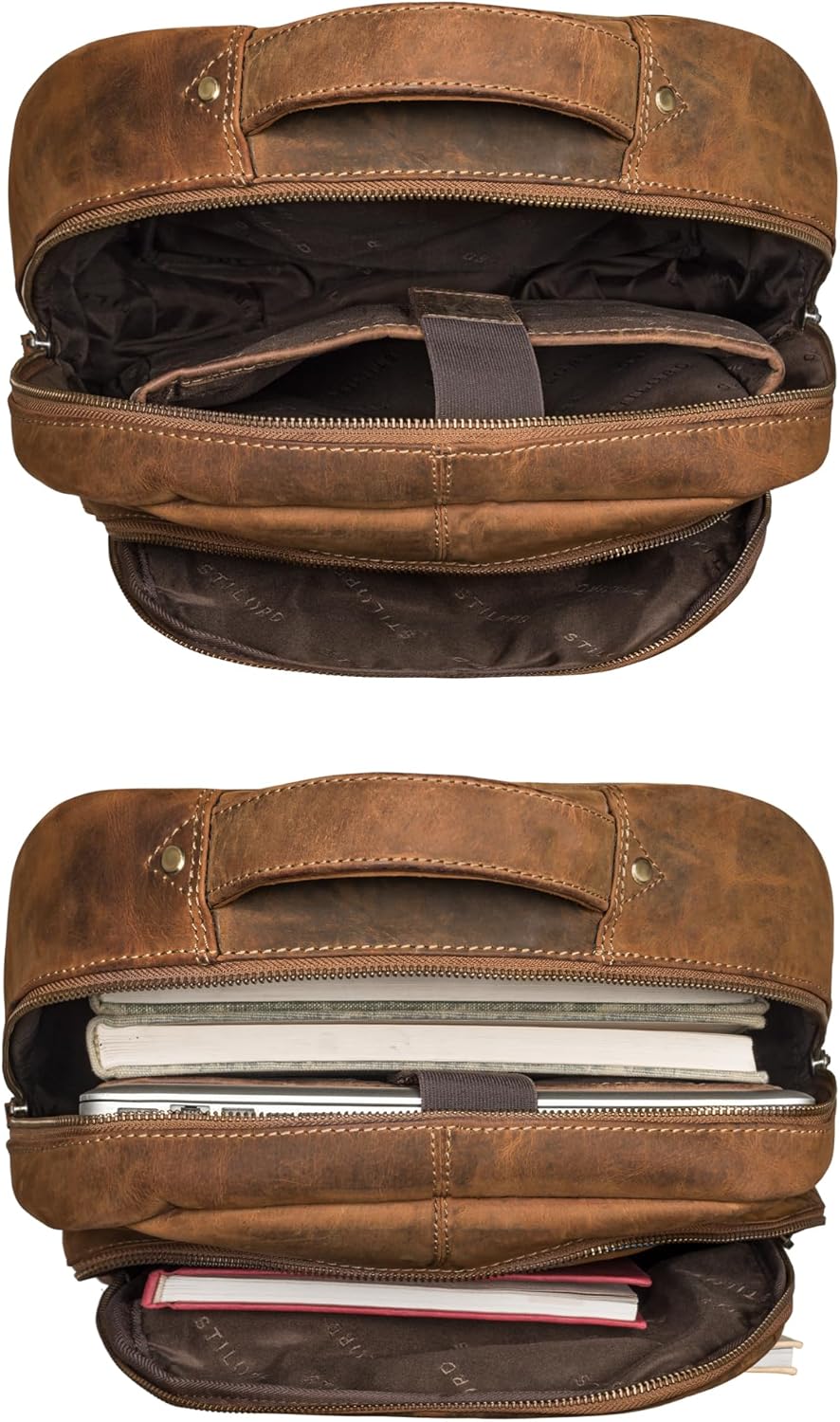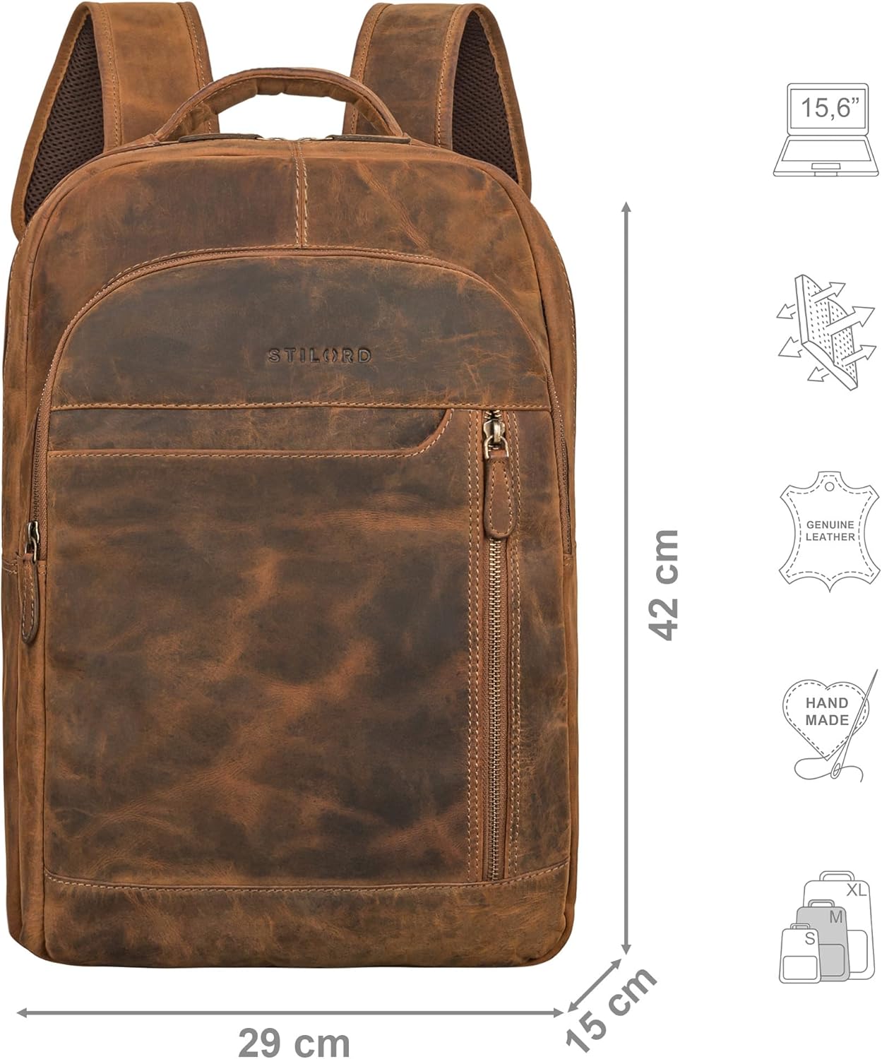 - ALLES AUF EINEN BLICK: Abmessungen: 29 x 15 x 42 cm | Gewicht: 1270 Gramm | Material: Rindsleder | Modell: Alura | Hersteller: STILORD | Kompatibilität: gepolstertes Notebookfach 15,6 Zoll (24 x 38 cm)