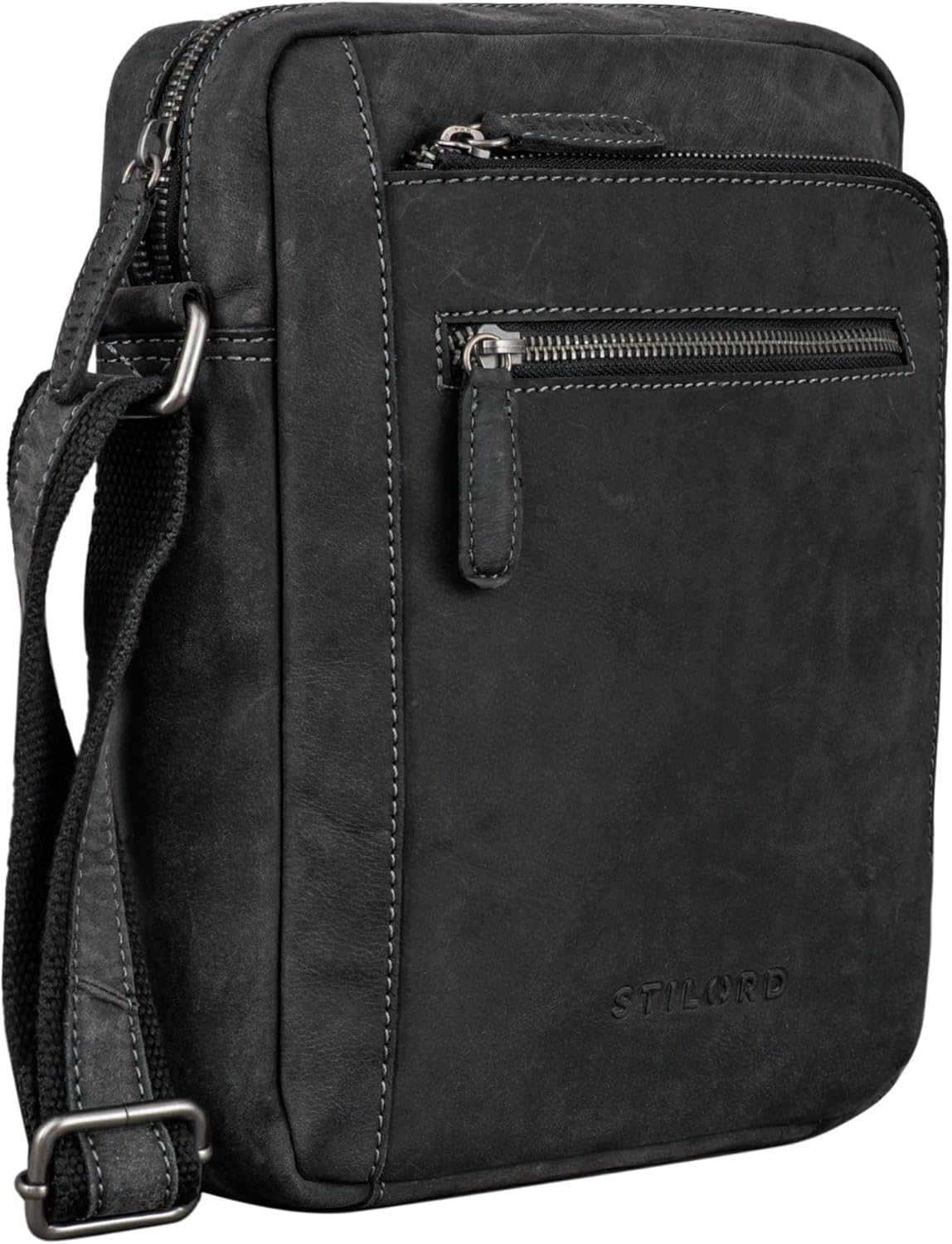 PRODUKTBESCHREIBUNGEN STILORD Bruce Herren Lederetui mit Schulterriemen Urban Lifestyle - Mit der Ledertasche "Bruce" für Herren entdecken Sie Streetwear im eleganten Stil. Hochwertiges Leder, klares Design und moderner Vintage Charakter - die STILORD Umhängetasche ist der beste Beweis dafür, dass Retro moderner ist denn je! Ein weiterer Vorteil - Dank des geräumigen Hauptfach und vielen weiteren Fächern können Sie A5 Dokumente, eine 0,5 Liter Wasserflasche und sogar ein 9,7 Zoll iPad einfach und bequem in Ihrer Lederumhängetasche verstauen. Ob auf dem Weg ins Büro oder in der Freizeit - mit der Ledertasche "Bruce" entscheiden sich stilbewusste Männer für eine moderne Umhängetasche mit viel Platz für das Wesentliche STILORD Leder Herren Tasche im Vintage - Kleine Ledertasche für Herren - Vielseitig einsetzbar als Kuriertasche, Tablet-Tasche, Freizeittasche und Arbeitstasche. - Hauptfach (nicht gepolstert) für DIN A5 Dokumente, Wasserflaschen und Tablets mit 0,5 l und iPad bis 9,7 Zoll und Tablets bis 10,1 Zoll (17 x 24 cm) - Durch den verstellbaren Schultergurt (75 bis 140 cm | 3,3 cm breit) ideal als Umhängetasche und Umhängetasche - Praktischer Verschluss mit sicherem Reissverschluss am Hauptfach - Moderner Used-Look: Streifen und Farbvariationen sind ein Qualitätsmerkmal von echtem Leder und unterstreichen das einzigartige Vintage Design. - Aufteilung: 1 x grosses Hauptfach mit 1 x kleines Reissverschlussfach, 1 x Smartphonefach | 1 x grosses Reissverschlussfach mit Organisationsleiste (2 x Stifthalter & 3 x EC-Karten) vorne | 1 x kleines Reissverschlussfach auf der Vorderseite | 1 x Reissverschlusstasche hinten - Masse (B x H x T): ca. 21 x 26 x 6 cm | Modell: Bruce | Gewicht: 580 g | Material: echtes Rindsleder | Herren | Hersteller: STILORD | Kompatibilität: Hauptfach (nicht gepolstert) für iPad 9.7 Zoll & 10.1 Zoll Tablets (17 x 24 cm)