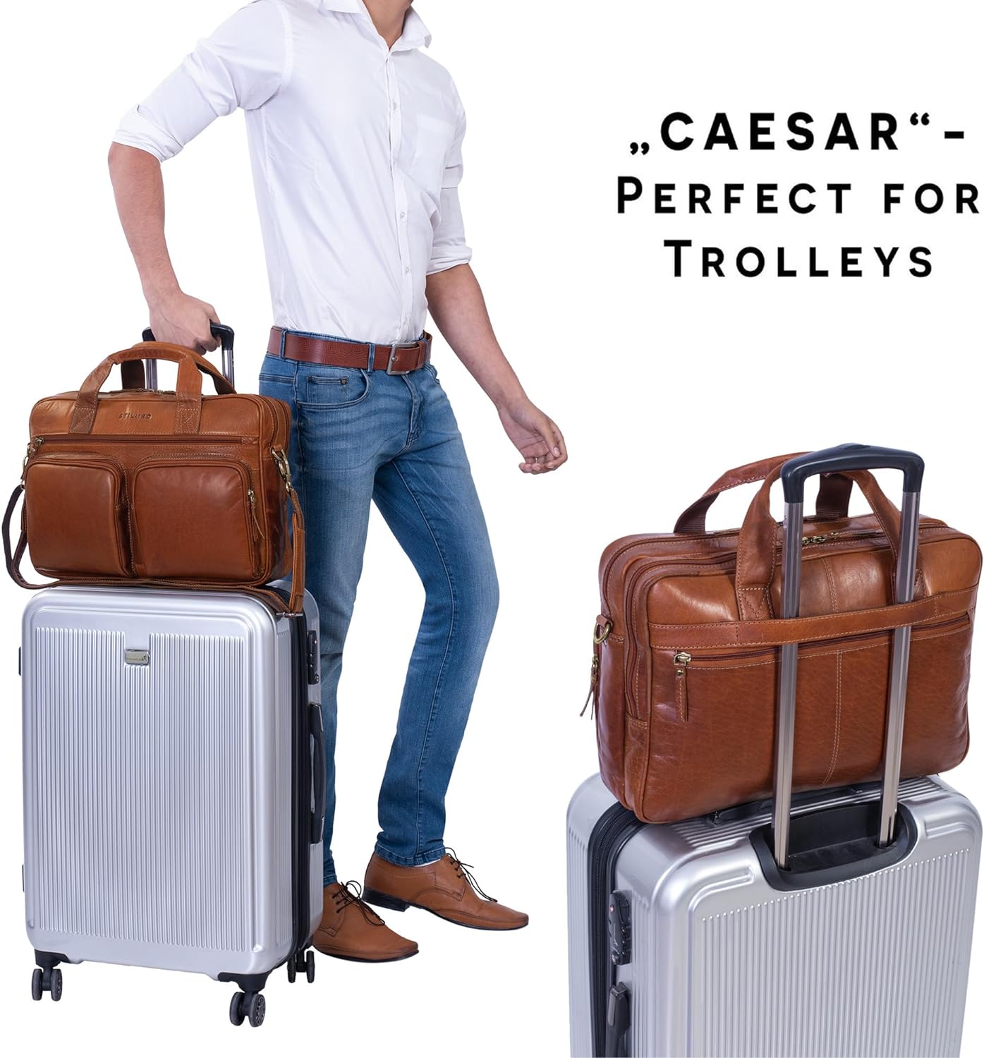 • 'Ceasar' Moderne Business Ledertasche vom deutschen Markenhersteller STILORD mit 15,6 Zoll Laptopfach und Trolleyschlaufe ideal im Daily Business und für Geschäftsreisen