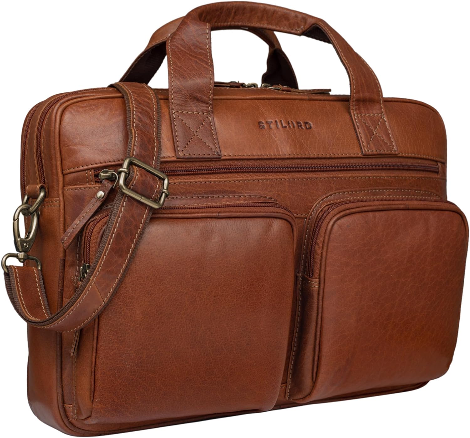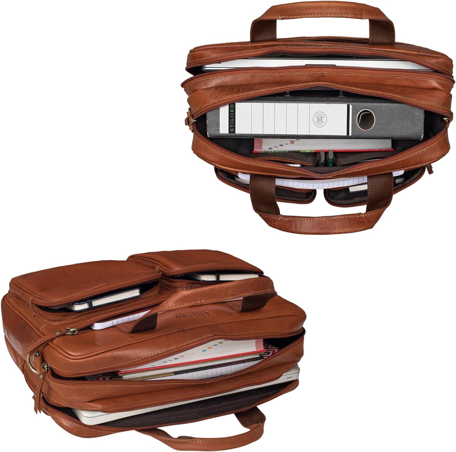 STILORD 'Caesar' Businesstasche 15,6 Zoll Leder Grosse Umhängetasche Aktentasche für Breite DIN A4 O