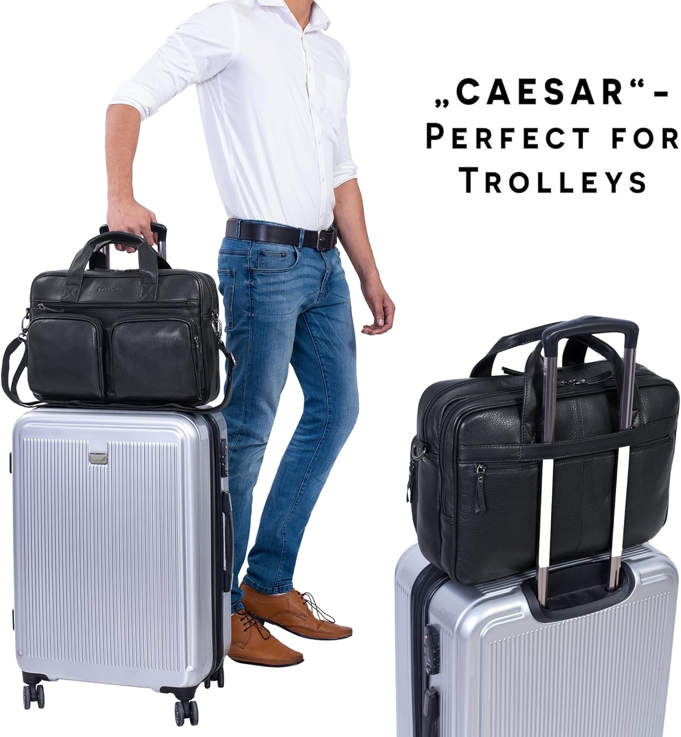 • 'Ceasar' Moderne Business Ledertasche vom deutschen Markenhersteller STILORD mit 15,6 Zoll Laptopfach und Trolleyschlaufe ideal im Daily Business und für Geschäftsreisen