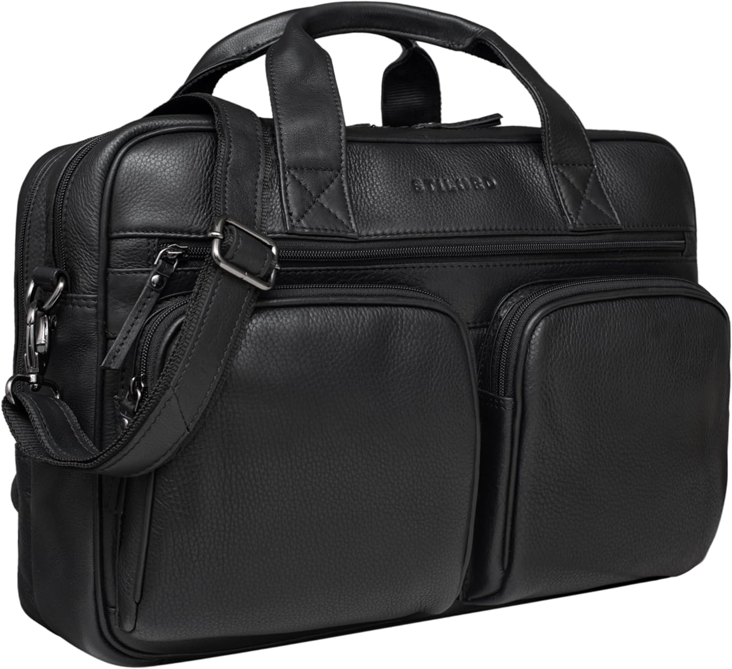 STILORD 'Caesar' Businesstasche 15,6 Zoll Leder Grosse Umhängetasche Aktentasche für Breite DIN A4 O