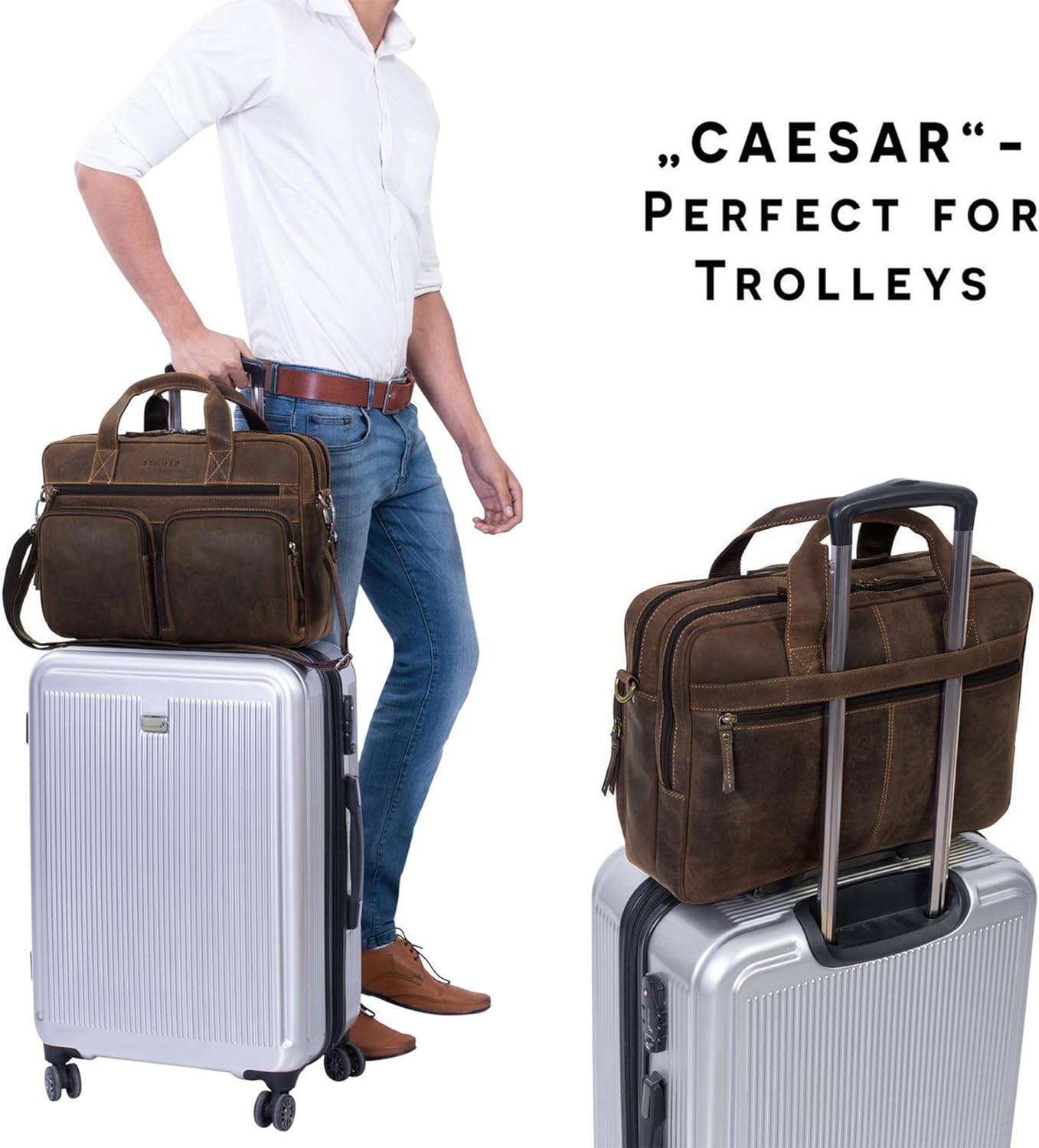 • 'Ceasar' Moderne Business Ledertasche vom deutschen Markenhersteller STILORD mit 15,6 Zoll Laptopfach und Trolleyschlaufe ideal im Daily Business und für Geschäftsreisen