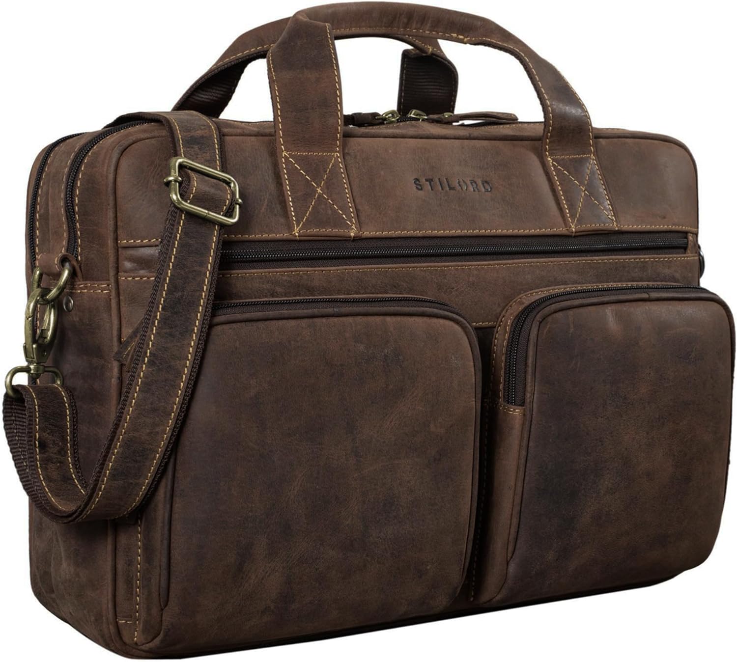 STILORD 'Caesar' Businesstasche 15,6 Zoll Leder Grosse Umhängetasche Aktentasche für Breite DIN A4 O