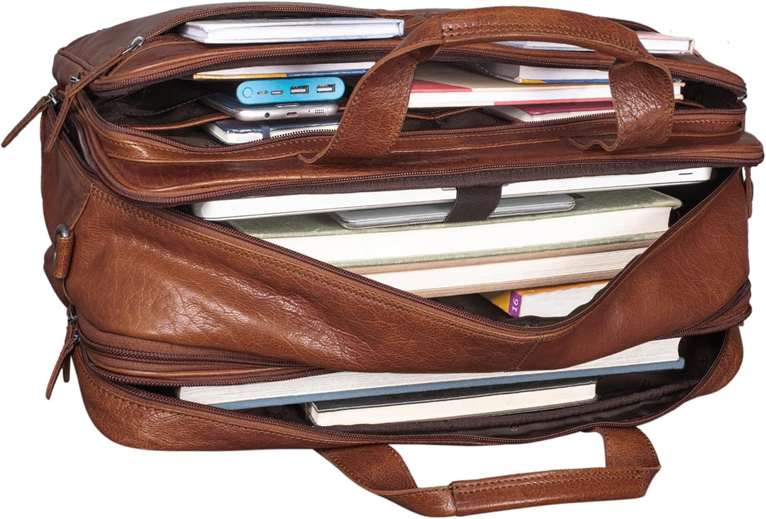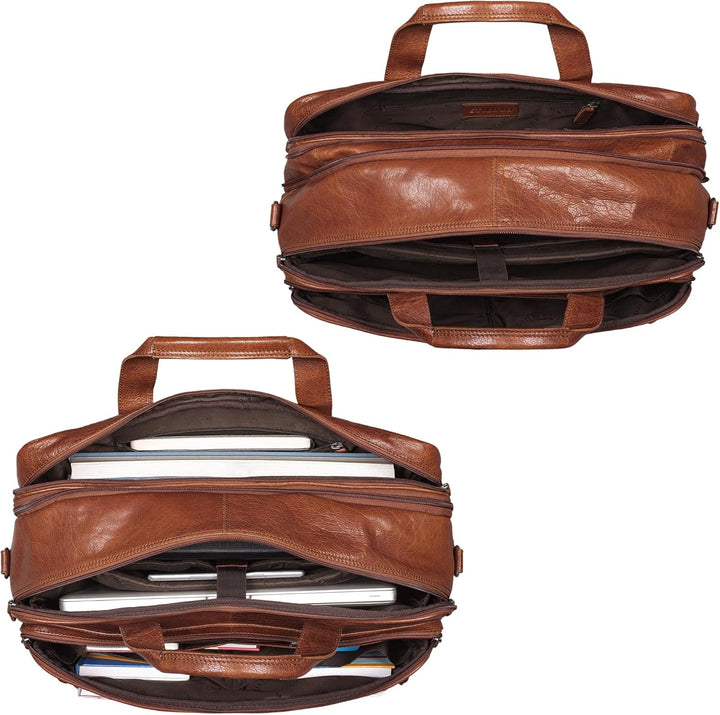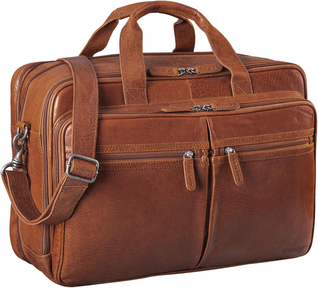 PRODUKTBESCHREIBUNGEN STILORD Gigantus XXL Laptoptasche aus Leder für 17,3-19 Zoll Laptop Das Wort "gigantisch" ist in unserem Marketing-Vokabular normalerweise nicht enthalten. Ein bisschen zu viel angezeigt, könnte man denken. Aber glauben Sie uns, es passt wirklich hier. Gigantus wurde entwickelt, um 2 grosse Ordner gleichzeitig zu transportieren, worauf Sie schon gewartet haben. Das gepolsterte 2-in-1-Fach ist im grösseren Fach für Laptops von 17,3 Zoll bis 19 Zoll (45 x 27 cm) ausgelegt. Selbst das kleinste Fach ist gross und ideal für MacBook 13,3 Zoll. Durch den dehnbaren Reissverschluss haben Sie bei einem Sturz noch mehr Platz. Zahlreiche weitere Reissverschlussfächer und Reissverschlussfächer runden das Angebot ab. Was bei STILORD klar ist: Hier trifft echtes Leder auf eine gewissenhafte Verarbeitung - die Kunst des Handwerkers! Gross und gigantisch. Worauf warten Sie? Extrem praktische Aufteilung: - Erstes Hauptfach: geeignet für grosse DIN Aktenordner und 2 Fächer für 2-in-1 Medien und 2 grosse Fächer. - Zweites Hauptfach: geeignet für grosse DIN Ordner - 1 Reissverschlussfach - 1 grosse Reissverschlusstasche hinten - 1 grosser Reissverschluss mit 6 aufgesetzten Taschen vorne - 2 kleine Reissverschlussfächer auf der Vorderseite Riesige Arbeitstasche aus Leder - verstellbarer und abnehmbarer Schultergurt mit Schulterpolster (ca. 80-135cm lang | 4cm breit - Ausziehbarer Reissverschluss für noch mehr Platz. - Bitte beachten Sie: Farbabweichungen und Kratzer sind ein Qualitätsmerkmal von echtem Naturleder. Masse: ca. 48 x 15 x 34 cm | Modell: Gigantus | Gewicht: 1800 Gramm | Material: Rindsleder | Hersteller: STILORD | Kompatibilität: 1. Laptopfach (45 x 27 cm) für Laptops von 17 bis 19 Zoll | 2. Laptopfach für 13,3 Zoll MacBook