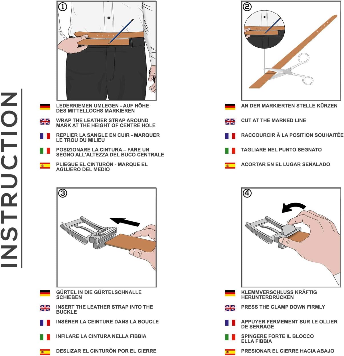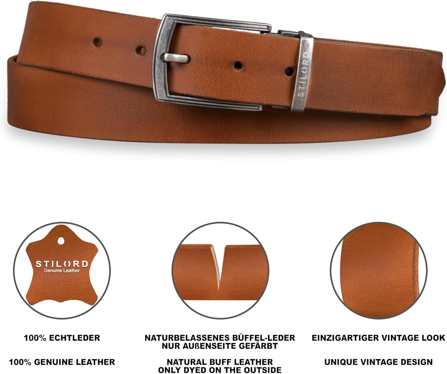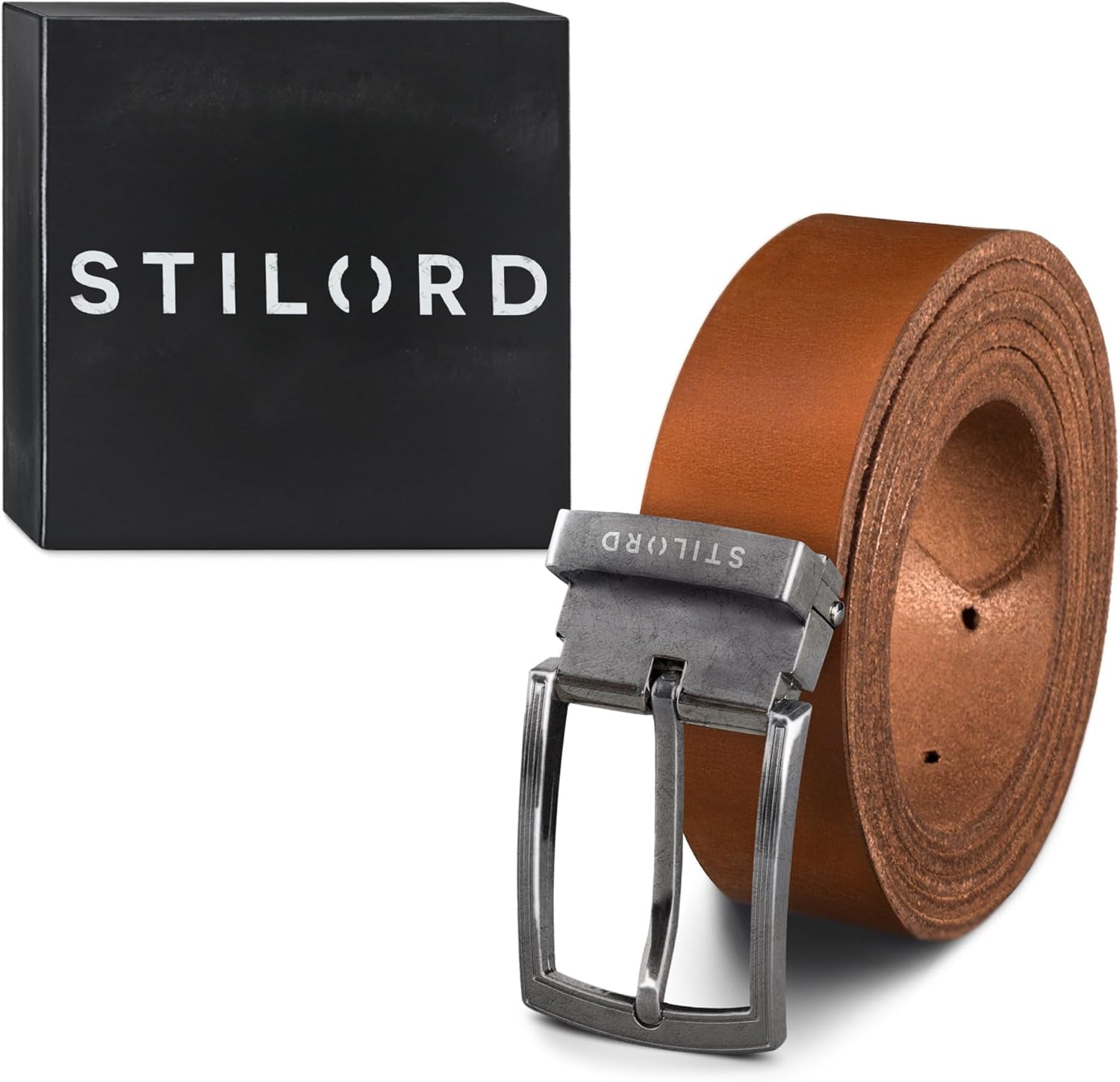 PRODUKTBESCHREIBUNGEN STILORD Ledergürtel Braun Männer Business oder Jeans Herren Gürtel - universell kürzbar Jeder Gürtel passt - Sie kürzen ganz einfach selbst! Die separate Lieferung von Lederriemen in Universalgrösse und Schnalle lässt Sie den Echtleder Gürtel zentimetergenau zuschneiden. Die Schnalle knipsen Sie danach einfach an. Als junger Markenhersteller setzten wir auf robustes Büffel-Leder, gewissenhafte Verarbeitung und stilsicheres Vintage Design. Dazu ist der Ledergürtel ebenso vielseitig : Ob im Casual Business Look oder zur Jeans in der Freizeit - mit Ihrem STILORD Voll-Leder Gürtel dürfen Sie überall selbsbewusst auftreten! STILORD Ledergürtel braun - Büffel-Leder Gürtel für Männer mit STIL - Hochwertiges, individuelles Echtleder Unikat - Robuster und stilsicherer Vintage Lederriemen: 4 mm stark, 34 mm breit mit Dornenschliesse - Lieferung in Used Look Geschenkbox - Universalgrösse 130 cm - Sie kürzen den Gürtel selbst, um die Länge Ihrem Hüftumfang zentimetergenau anzupassen - Individuell zusammenstellbar: Separate Lieferung von Lederriemen und Schnalle - intuitive Montage in wenigen Sekunden - Echtes Büffel-Leder: besonders widerstandsfähig, robust und durch markante Maserung geprägt | ebenmässige Lederoberfläche durch Glättung - Wir bewahren den Charakter des Echtleders: Lediglich die äussere Lederschicht wird eingefärbt. Die Farbe dient Optik & Konservierung. Leichte Geruchsentwicklungen sind daher möglich. Der Geruch verfliegt, der Effekt bleibt! - Sie können Ihren Universal Lederriemen individuell kürzen. Hierbei sehen Sie das ursprüngliche, ungefärbte Leder. Eine ausführliche Anleitung zur Kürzung und Stecksystem finden Sie in der Bildergalerie und dem Produkt beigelegt.