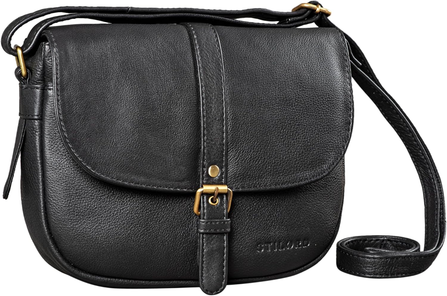 - 'Leni' Damen Umhängetasche Leder kleine Handtasche Frauen | kleine Schultertasche aus echtem Leder mit vielen Fächern | modisches Accessoire und ideale Geschenkidee für stilbewusste Damen
