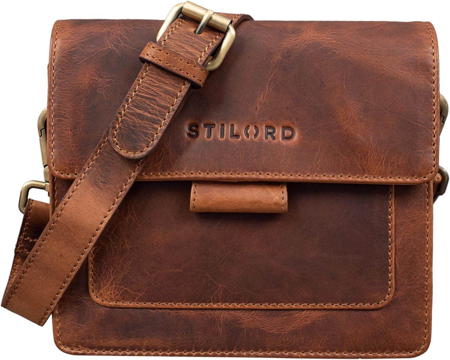 PRODUKTBESCHREIBUNGEN STILORD 'Naomi' Kleine Damen-Umhängetasche aus Leder Eleganz, die in kleinen Grössen überzeugt: dezent und geradlinig bringt die Damenhandtasche den minimalistischen Stil zurück in unsere Garderobe - und damit in unser Fashionista-Herz! Wie praktisch ist es, einen solchen zeitlosen Klassiker ganz einfach kombinieren zu können. Unser Tipp: Tragen Sie 'Naomi' als Clutch zu einem eleganten Abendkleid oder als stylische Umhängetasche zu Jeans und Blazer. Auch im Inneren bleibt die Damentasche ihrer klaren Linie treu: Das Hauptfach ist durch eine zentrale Reissverschlusstasche in zwei einzelne Fächer unterteilt, so dass Handy, Make-up, Schlüssel und Geldbeutel jetzt noch übersichtlicher verstaut sind. Für besonders kleine Schätze sind im Innen- und Aussenbereich weitere Fächer vorhanden. Eleganz kann so praktisch sein! 'Naomi' Kleine Damen Leder Handtasche - Alle Vorteile: - Von der Tasche bis zur Umhängetasche dank verstellbarem und abnehmbarem Gurt (120-130 cm lang | 2,5 cm breit) - Stil und Sicherheit: Klappe mit magnetischen Druckknöpfen für sicheren Transport Ihrer Wertsachen. - Echtes Leder ist ein Naturprodukt, das mit der Zeit immer einzigartiger wird. Farbvariationen und Kratzer sind ein Qualitätsmerkmal von Vintage-Naturleder. - Aufteilung: 1 x Hauptfach mit zwei Fächern (1 x Reissverschlussfach als Trennung) | 1 x kleines Reissverschlussfach und 1 x Innentasche | 1 x Fach unter der Klappe vorne | 1 x Reissverschlussfach hinten - Masse: ca. 19,5 x 7 x 18 cm | Modell: Naomi | Material: Echtleder | Gewicht: 500 Gramm | Hersteller: STILORD