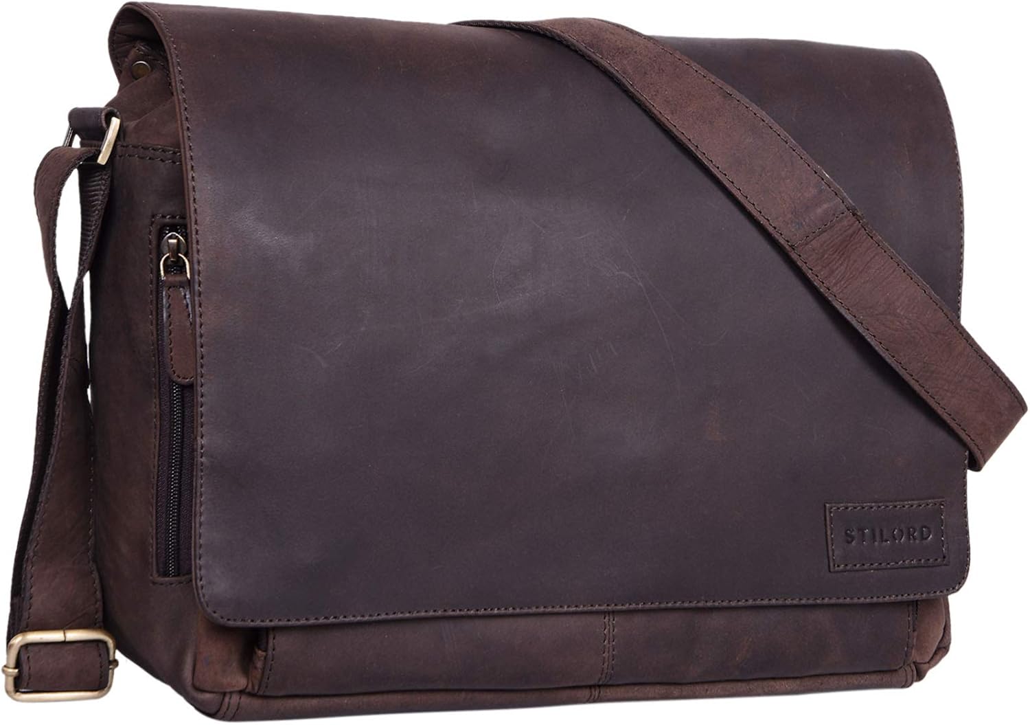 PRODUKTBESCHREIBUNGEN 15,6 Zoll Laptoptasche aus Leder Diese Umhängetasche aus Leder für Damen und Herren ist nicht nur ein treuer Begleiter in jeder Lebenslage aufgrund ihrer sehr praktischen Innenaufteilung. Neben den "inneren Werten" überzeugt die STILORD Umhängetasche auch durch ihr Äusseres: echtes Büffelleder, im angesagten Vintage Design und klassisch und zeitlos. Fünf Vorteile auf einen Blick: - 1.: Echtes und langlebiges Büffelleder - 2.:längenverstellbarer und bequemer Schultergurt - 3. : Separates Fach für 15,6" Laptop - 4. Tolle Optik - zeitloses und elegantes Design gepaart mit Vintage-Look - 5: Aufwändige Aufteilung, viele Fächer und drei Hauptfächer STILORD Schultertasche Leder - alles weitere in der Übersicht: Verteilung: - Masse (B x H x T): ca. 41 x 33 x 13 cm - Masse Laptopfach: 38,5 x 26 cm - passend für Geräte bis 15,6" - 1 horizontale Reissverschlusstasche hinten - 1 grosses Hauptfach - 1 kleine Reissverschlusstasche innen - 1 grosse Reissverschlusstasche hinten - Verstellbarer Schultergurt: 105-140 cm | 3,7 cm breit - Echtes Naturprodukt So können Farbabweichungen auftreten. - Verschlussart: Klappdeckel mit Magnetköpfen - Futter: Polyester - Material: echtes Büffelleder - Gewicht: 1250 g - Bitte beachten Sie: für diese Umhängetasche wurde Vintage Büffelleder verwendet - Die charakteristischen Streifen und Farbvariationen sind keine Mängel, sondern zeichnen diese Tasche aus!