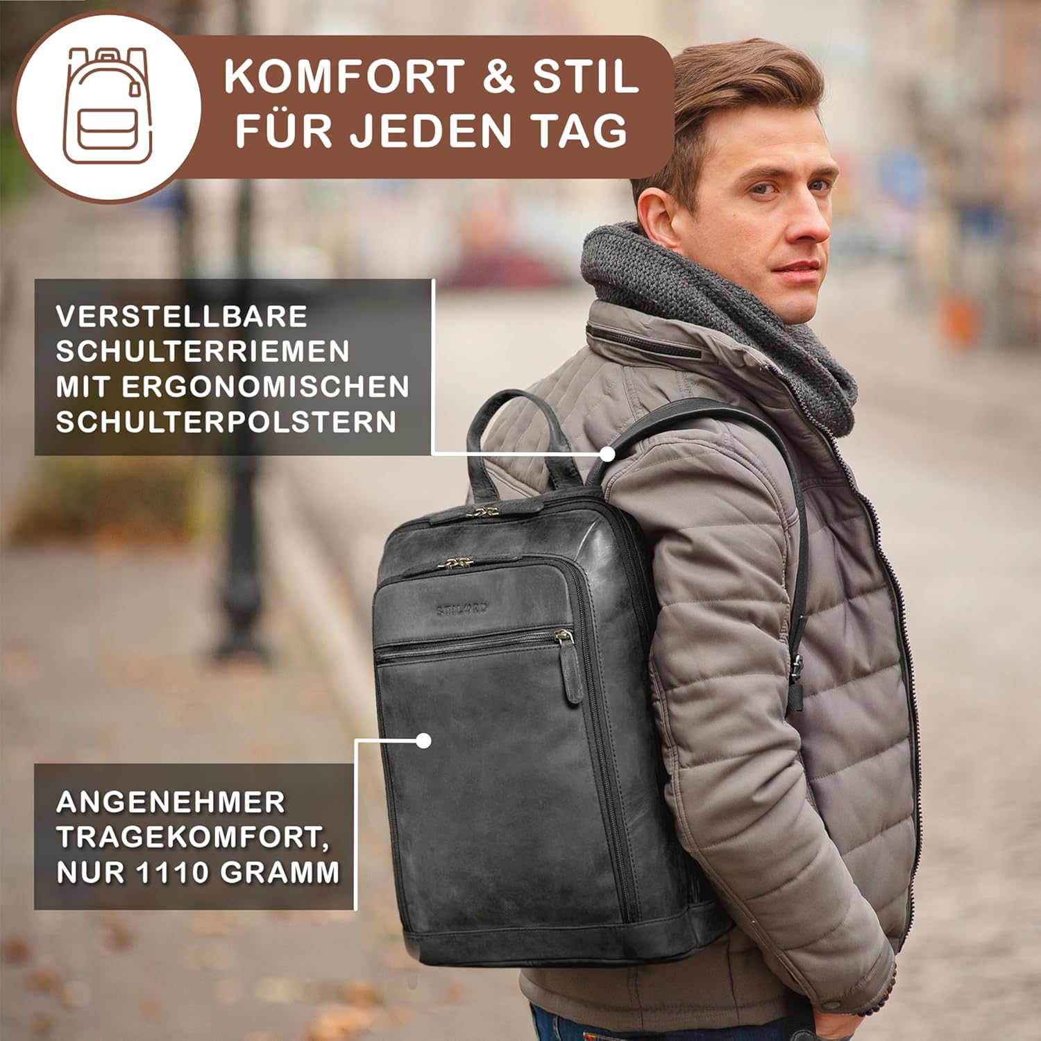 • 'Watson' Laptop Rucksack 15.6 Zoll Leder vom Markenhersteller STILORD. Stilsicherer Begleiter auf jedem Weg - vom Büro bis zum Feierabend