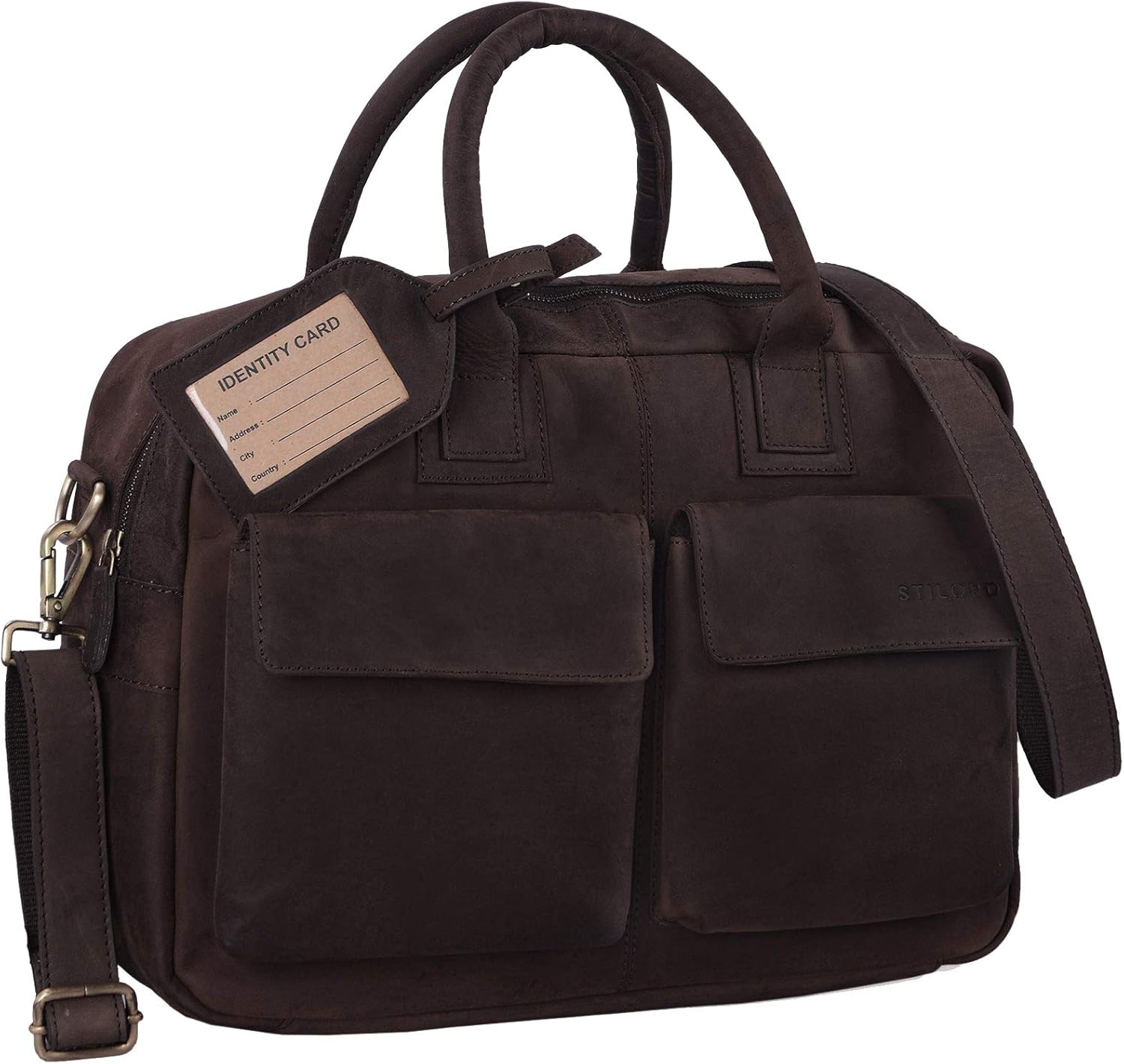 PRODUKTBESCHREIBUNGEN STILORD Grosse Umhängetasche Leder Lehrertasche Eine multifunktionelle, grosse und gleichzeitig elegante Ledertasche von STILORD. Beliebt ist die Tasche auch bei Lehrern, da das grosse Platzangebot eine strukturierte Aufbewahrung der Arbeitsmaterialien ermöglicht. In Beruf, Freizeit oder auch auf Reisen haben Sie dieser besonderen Umhängetasche viele Vorteile: Den Anfang macht der praktische Schultergurt, der längenverstellbar und abnehmbar ist. Alternativ tragen Sie das Lederunikat auch als Handtasche. Besonders praktisch ist das grosse, gepolsterte Laptopfach (40x22 cm) für MacBooks oder Notebooks (13 14 oder 15.6 Zoll). Hinzu kommt die praktische Organisationsleiste mit Stifthaltern, Portemonnaie bzw. Handy Fach und vier Kreditkartenhaltern. Alles Weitere in der Übersicht: Laptoptasche Leder Herren 15,6 Zoll - Highlights und Fakten - Tragemöglichkeit als Handtasche oder Umhängetasche - 1 x grosses Reissverschlussfach auf der Rückseite - 1 x längliches Fach mit Reissverschluss mit Einsteckfächern für Smartphone, Stifte und Kreditkarten - 1 x grosses Hauptfach, geeignet für Bücher oder grosse Aktenordner - Laptopfach für Geräte bis 15.6 Zoll - Masse ca. 40 x 22 cm | Polsterung & Klettverschluss zur Sicherung - jeweils 1 x Portemonnaie- und Schlüsselfach - elegantes Vintage Design - verstell- und abnehmbarer Schulterriemen (120 - 155 cm lang | 3,3 cm breit) - Abmessungen: 40 x 18 x 30 cm | Modell: Carlo | Material: echtes Büffel Leder | Hersteller: STILORD | Kompatibilität: Für 15,6 Zoll Laptops