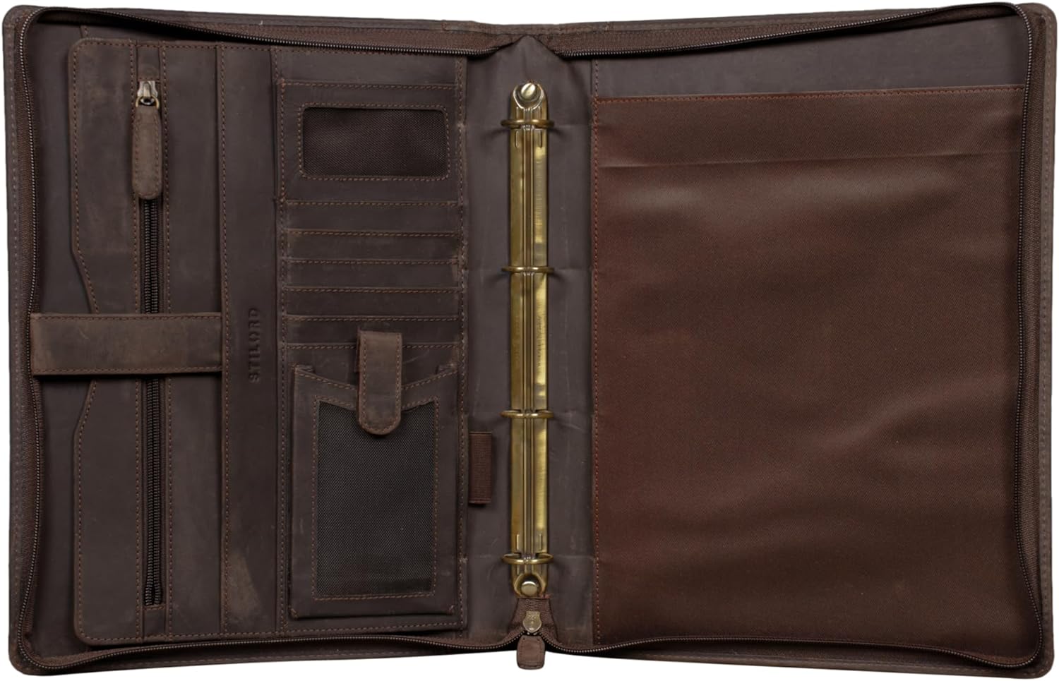 - Hochwertige Aktenmappe aus echtem Leder von STILORD | EleganteVintage Dokumentenmappe Leder A4 für Herren und Damen, Ringbuch, Organizer, grosse Leder Konferenzmappe, 13,3 Zoll Laptoptasche, Klassische Dokumentenmappe mit Reissverschluss, Ringbuchmappe,