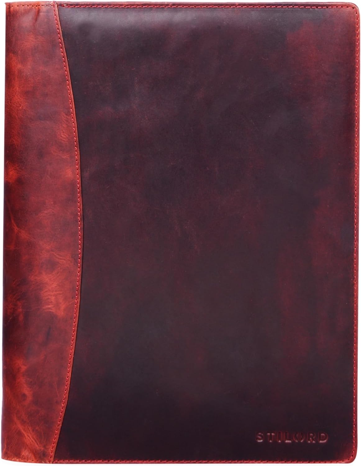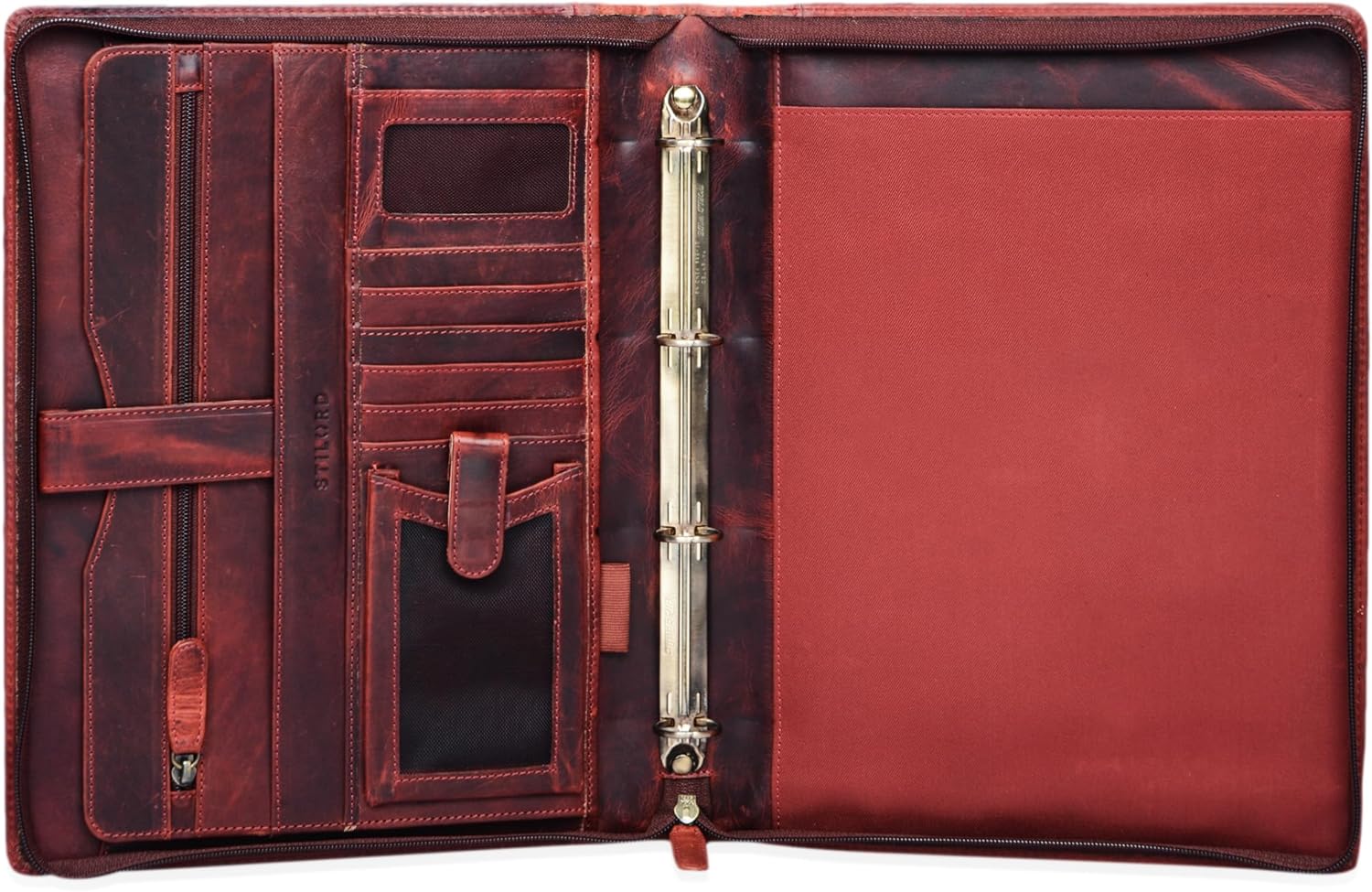 STILORD 'Vincent' Konferenzmappe Leder A4 braun Dokumentenmappe mit Ringmechanik 13,3 Zoll Schreibma