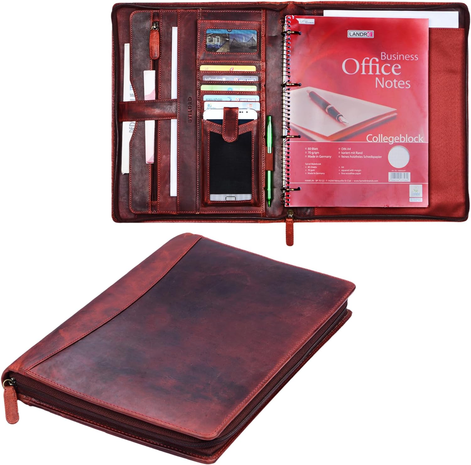 • Robuste Ringordnermechanik für A4-Blöcke und mit Klettverschluss gesichertem Fach | Bestens vorbereitet in jedes Meeting - hochwertige Aktenmappe aus echtem Leder von STILORD |