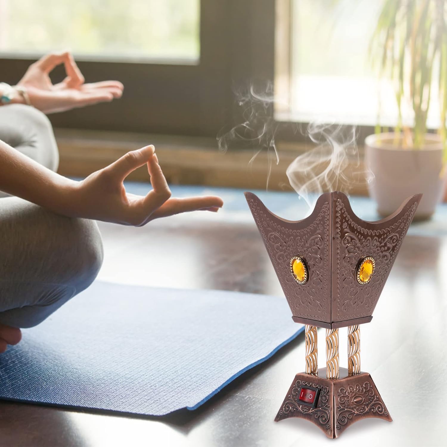 • Elektrischer Weihrauchbrenner Oud Weihrauch Brenner Middle East Style Censerhalter Antike Weihrauch Bakhoor Halter Herd für Home Office Tee Teen Geschenke.