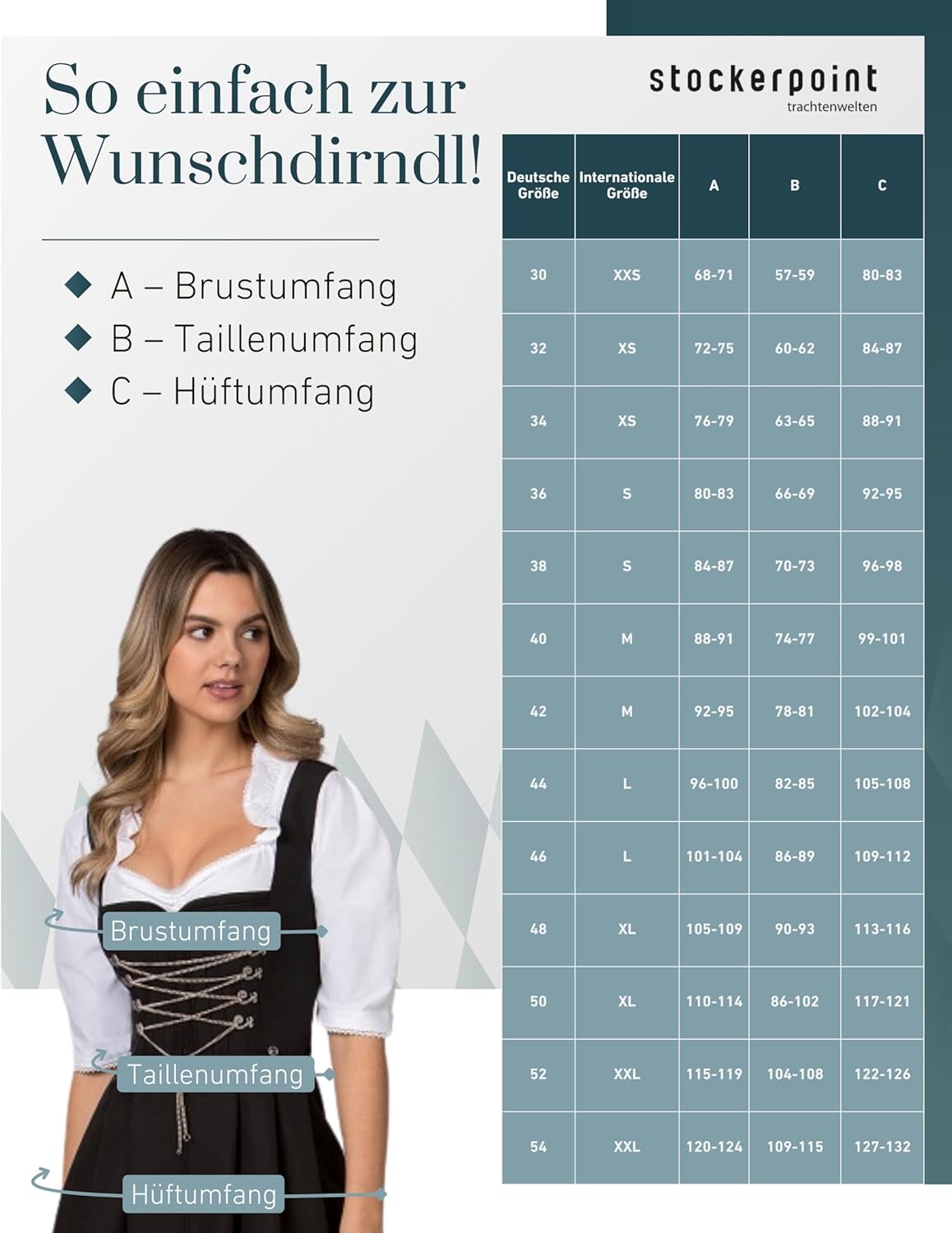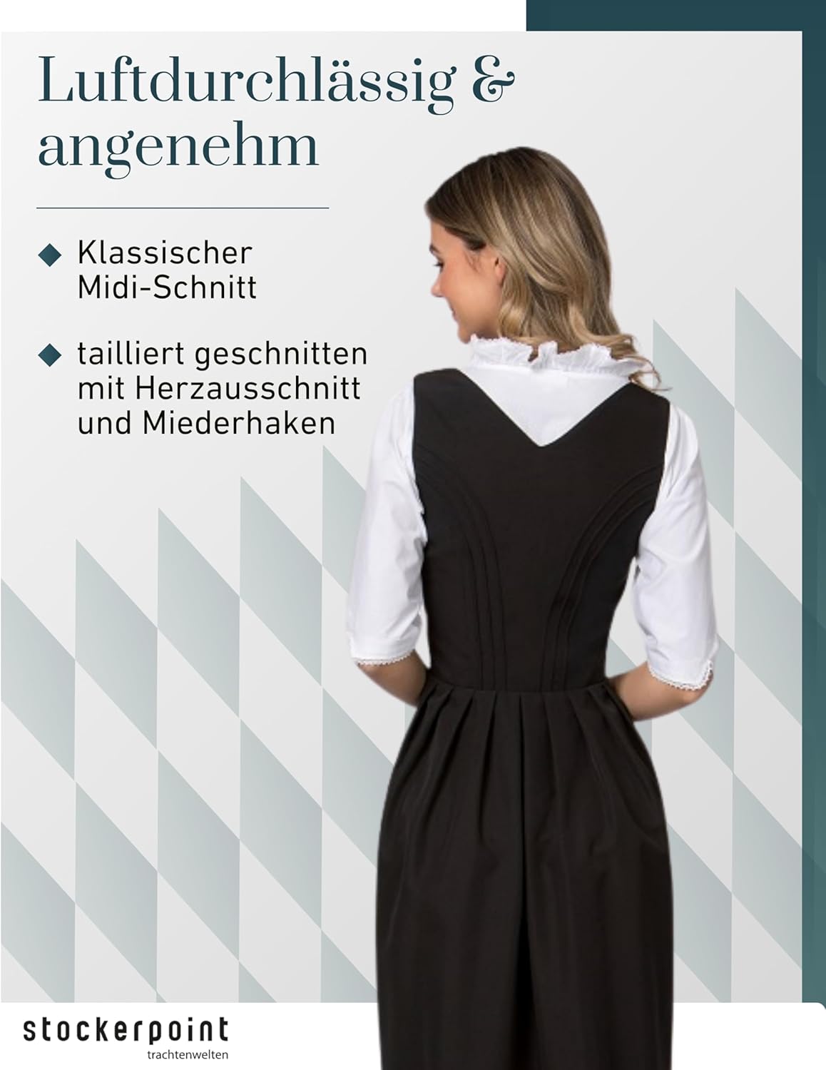 PRODUKTBESCHREIBUNGEN Dirndl Adele ohne Schürze für Damen von Gastrotex in schwarz. Das klassische Dirndl aus einem hochwertigen, pflegeleichten Stoff besticht mit vielen liebevollen Details. Das Mieder ist mit handgearbeiteten Reliefverzierungen veredelt. Die klassischen Miederhaken sind mit einem Kettenverschluss versehen. Der ideale Kombipartner für alle trendigen und traditionellen Schürzen. Dazu passen die Schürzenmodellen SC-300, Claire, Kristin, Molina und Corinna. Unser Model trägt die Bluse B-1015 in weiss. Bluse und Schürze sind nicht im Lieferumfang enthalten.